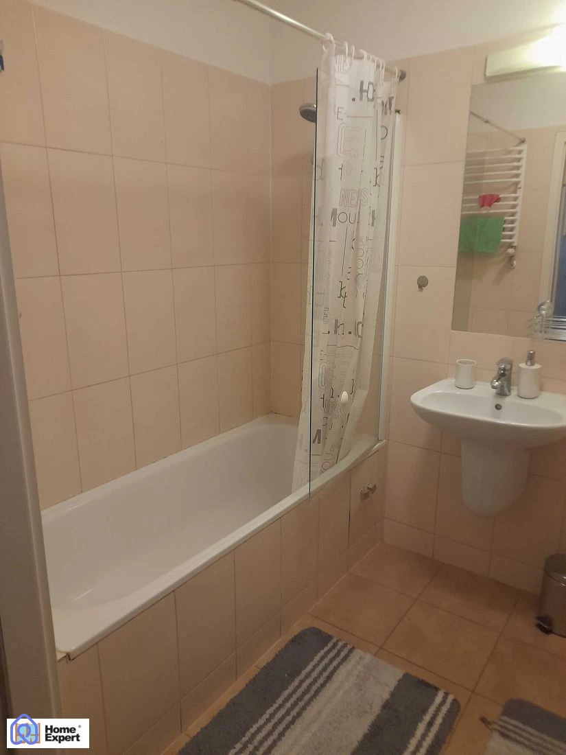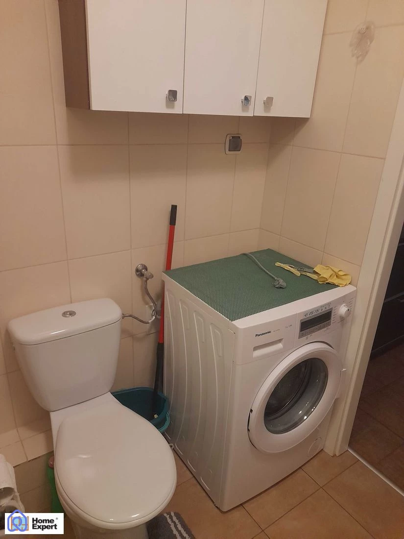 -Łazienka wanna z prysznicem, umywalka, toaleta, pralka, szafki