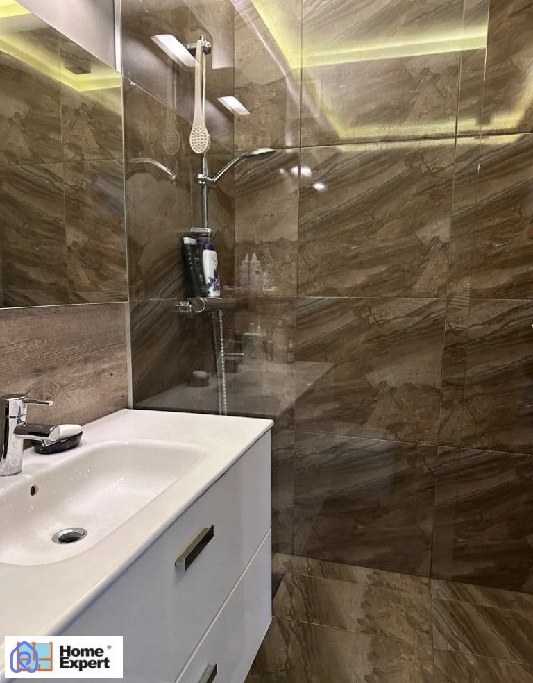 W łazience kabina ze szklaną zabudową robioną na zamówienie.