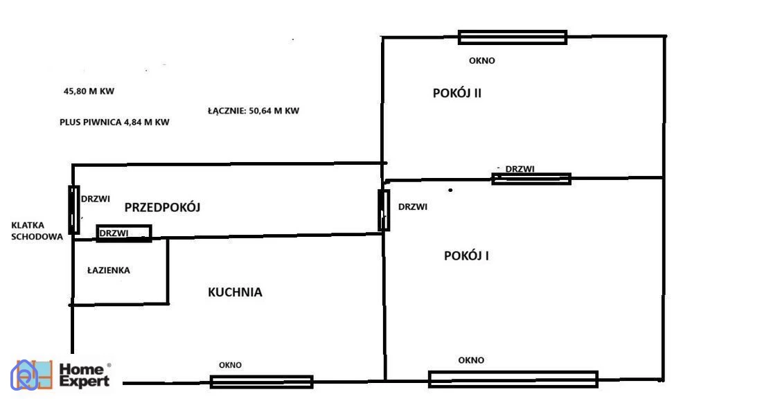 Przytulne, dwupokojowe mieszkanie o łącznej powierzchni 50,64 m², (45,80 m²,mieszkanie i 4,84 m², piwnica).