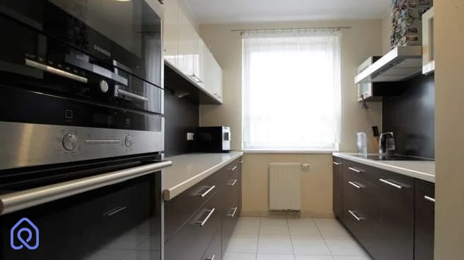 Kuchnia (12 m²) w pełni wyposażona w meble na wymiar i sprzęt marki Siemens.