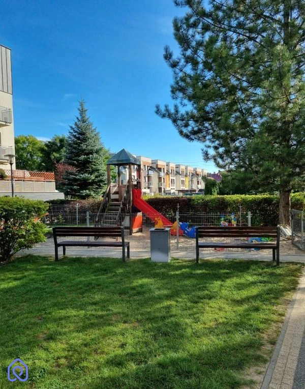 Zamknięte osiedle z placem zabaw i miejscem do wypoczynku.