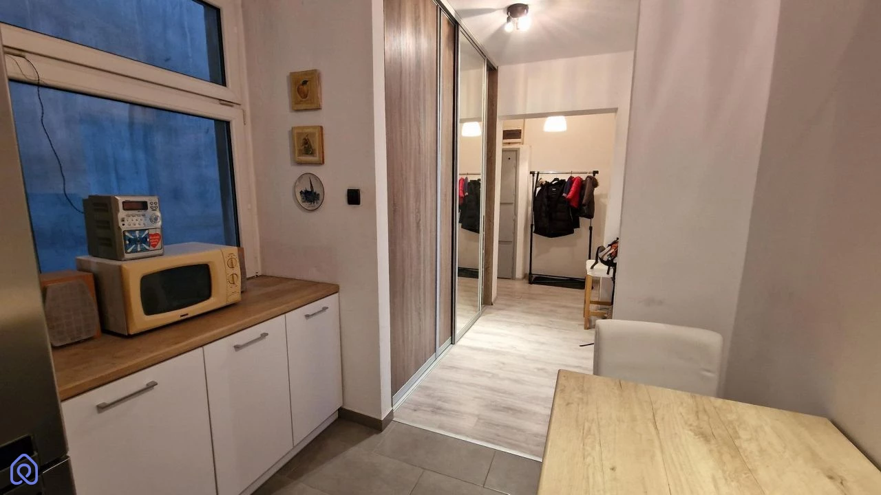 Wnętrze mieszkania jest nie tylko funkcjonalne, ale także wyposażone w potrzebne udogodnienia. Kuchnia jest kompleksowo wyposażona, a łazienka wyposażona w ogrzewanie podłogowe, pralkę, prysznic oraz nowy Junkers do podgrzewania wody. Pokoje są ogrzewane wydajnymi piecami elektrycznymi, co sprawia, że koszty zimą są umiarkowane.