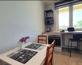 Oddzielna kuchnia, dwa pokoje, garderoba, duży, słoneczny balkon. Mieszkanie w pełni wyposażone w nowe AGD: pralka, zmywarka, płyta indukcyjna, piekarnik, duża lodówka, odkurzacz. Dodatkowo: deska do prasowania, suszarka na pranie, podstawowe wyposażenie kuchni (garnki, naczynia, sztućce). W obu pokojach rozkładane miejsca do spania. 2 piętro. Duża winda z poziomu ziemi i garażu podziemnego. Możliwość wynajęcia miejsca w garażu podziemnym. Budynek podpięty do światłowodu.