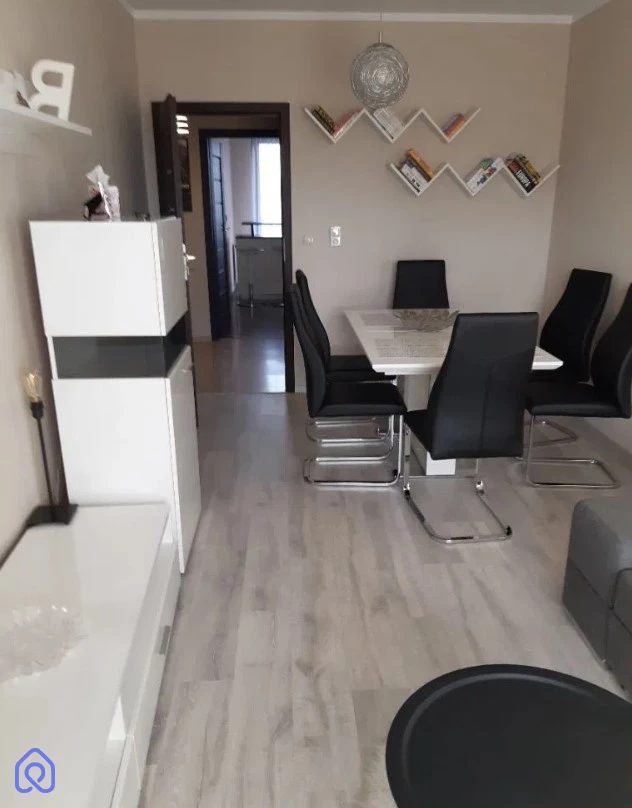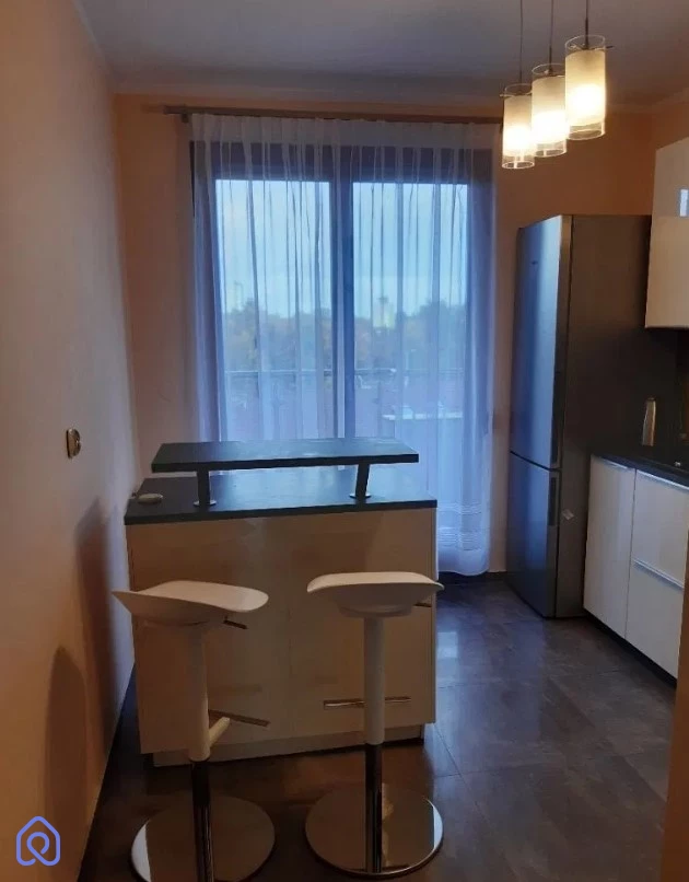 Mieszkanie zostało wykończone materiałami wysokiej jakości. Jest ono również umeblowane. Posiada kuchnię w zabudowie. Oraz dwie duże przesuwne szafy. Z każdego pokoju jak również kuchni można wyjść bezpośrednio na loggie.