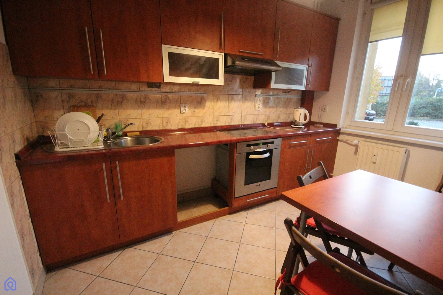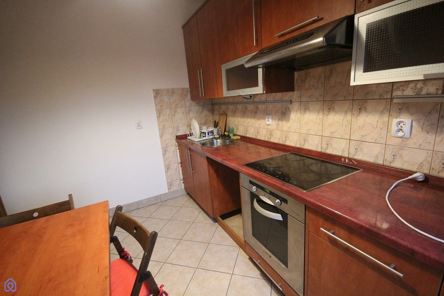W kuchni pozostają meble kuchenne, płyta elektryczna, a także armatura w łazience i szafka.