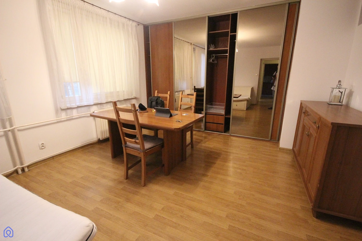 W pokoju znajduje się zabudowana szafa, w przedpokoju szafa wolnostojąca i szafka na buty.
