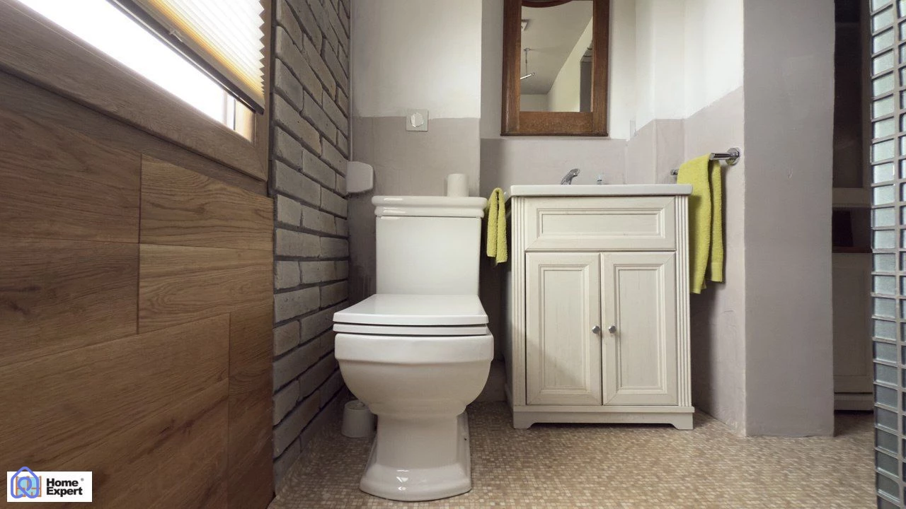 łazienka z toaletą i miejscem do przechowywania,
