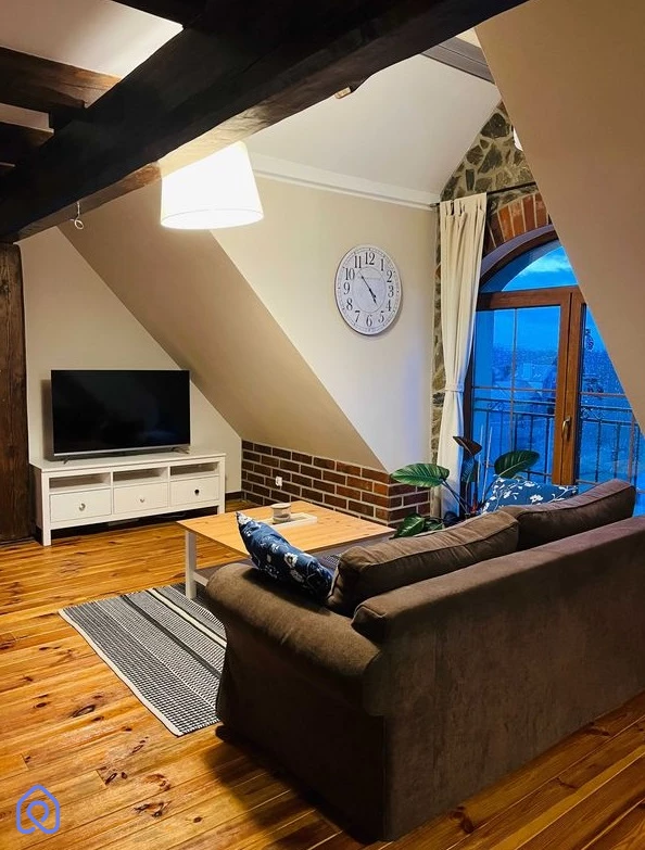 Duże okna, drewniane podłogi, skosy, belki, cegła na ścianach, łupek - budują niepowtarzalną atmosferę tego miejsca, które przypadnie do gustu każdemu, kto ceni sobie oryginalny desing.