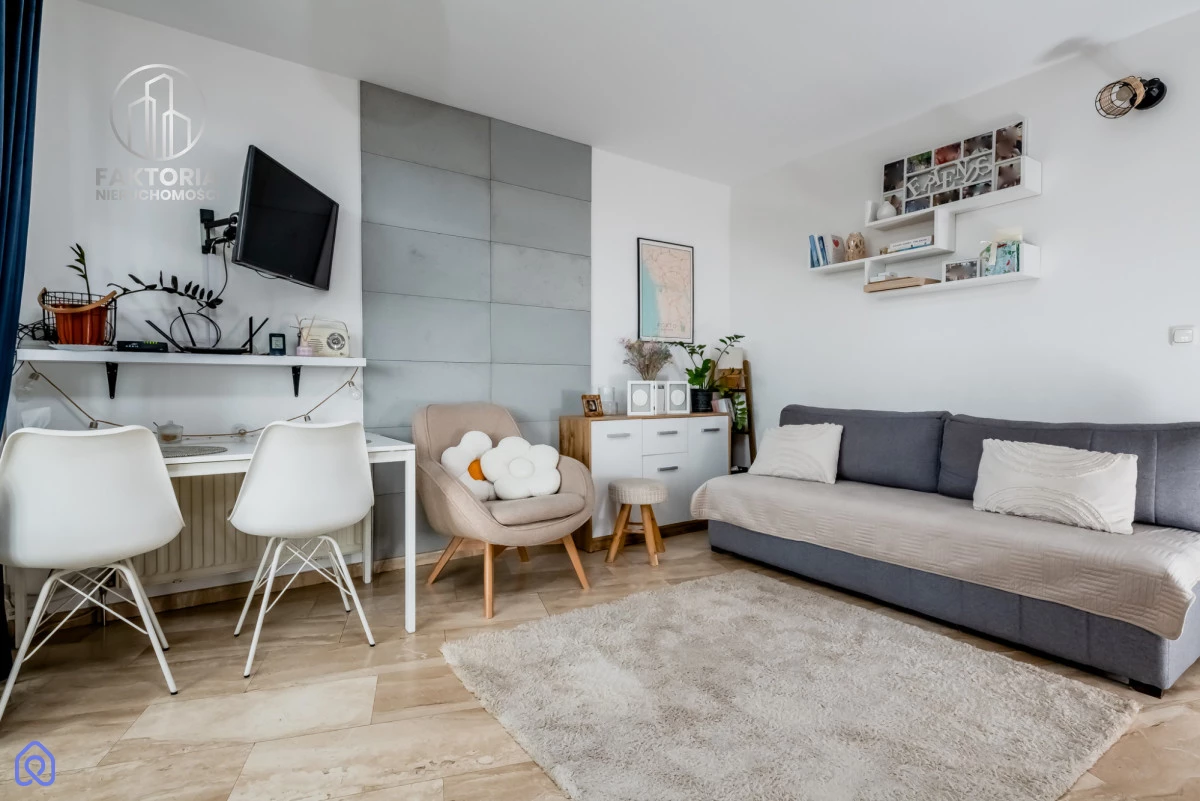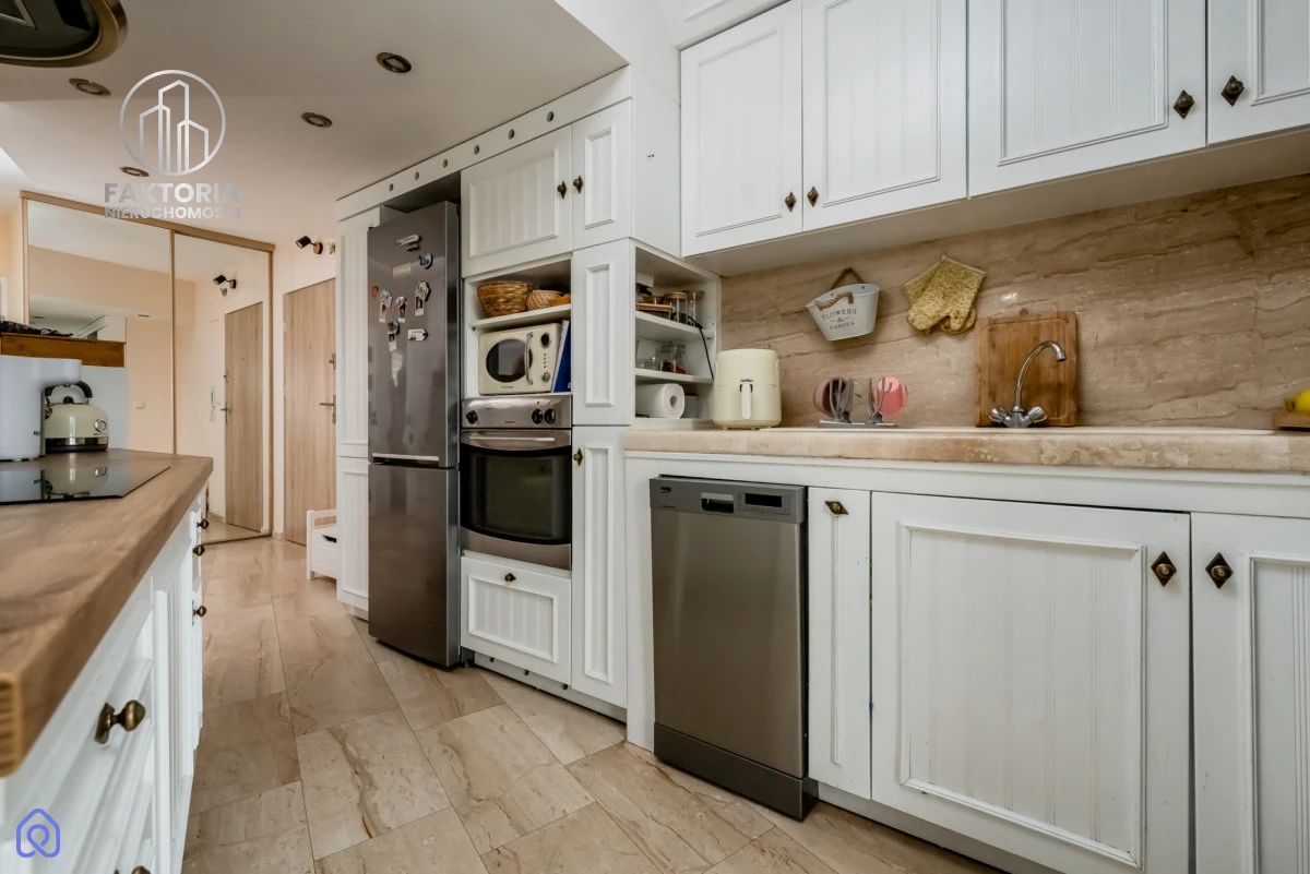 Mieszkanie wykończone materiałami wysokiej jakości - kamienne podłogi w salonie i kuchni, elegancka łazienka, kuchnia z nowym sprzętem AGD i praktyczną zabudową. Gotowe do wprowadzenia, bez dodatkowych nakładów.