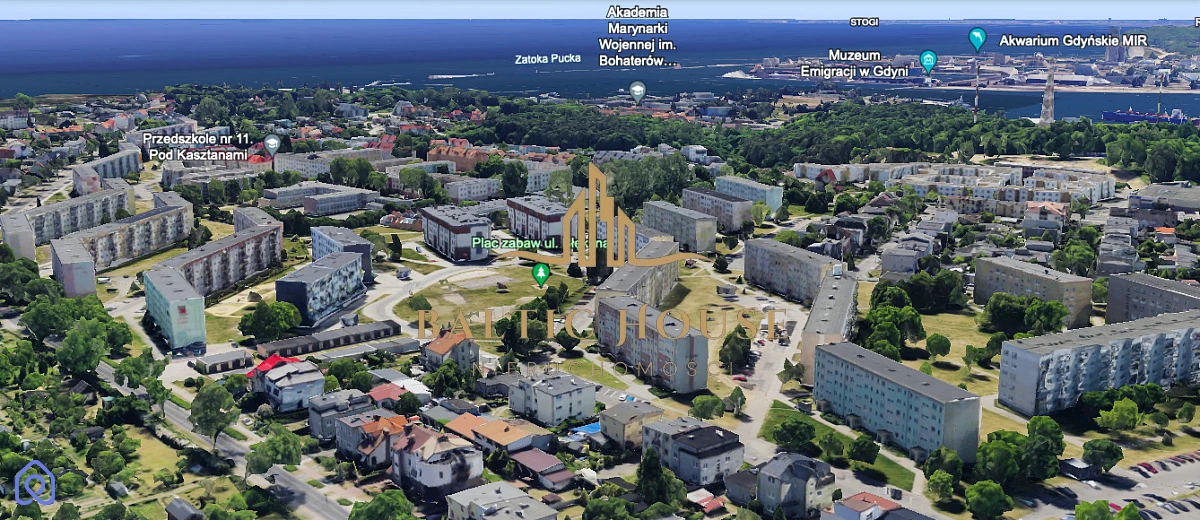 Nieruchomość położona jest w spokojnej części Gdyni, która charakteryzuje się bliskością terenów zielonych oraz morza a także bardzo dobrym dojazdem do pozostałych części miasta.