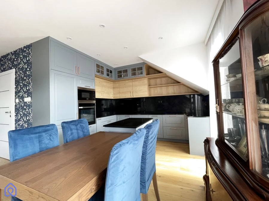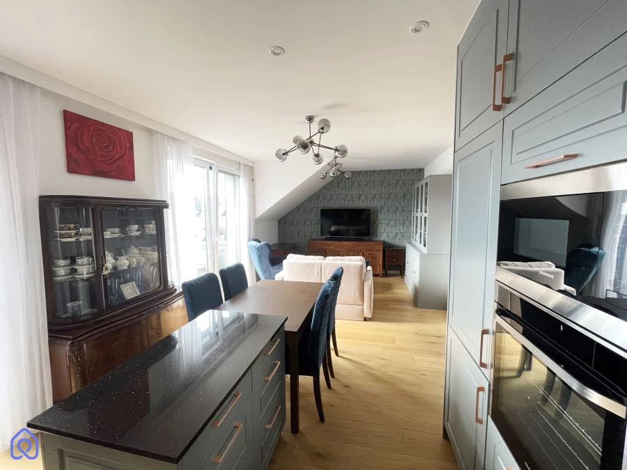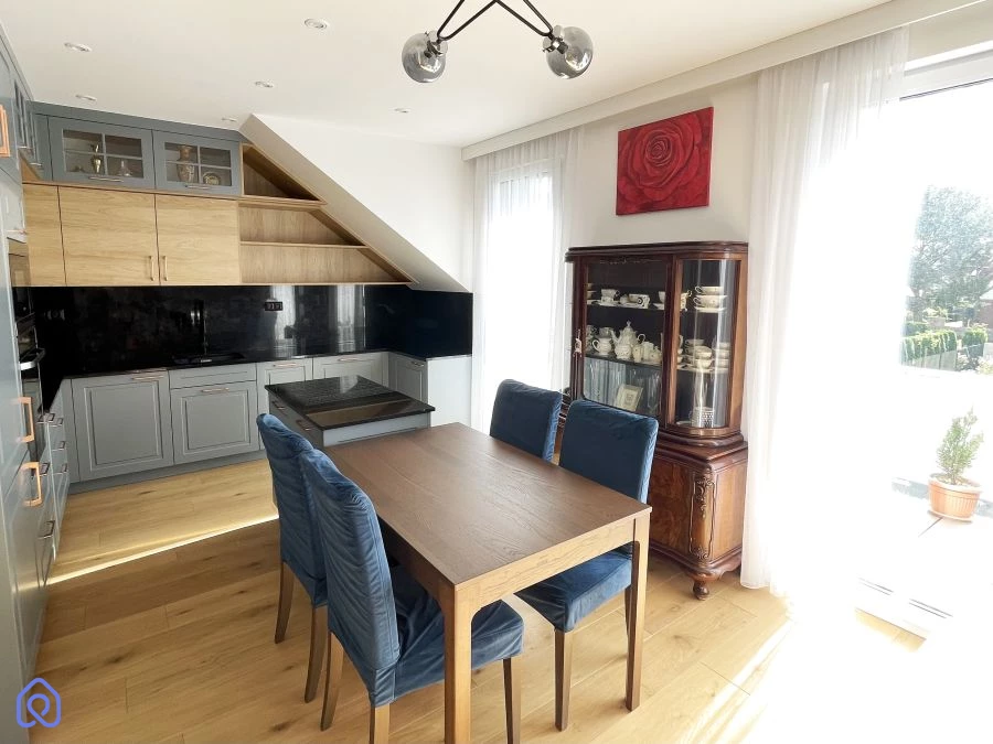 Sprzedam wyjątkowe bezczynszowe mieszkanie o powierzchni 63 m2 położone w jednej z najbardziej malowniczych części Olsztyna - zaledwie 5 minut spacerem od dwóch jezior: Ukiel i Tyrsko, a także w pobliżu lasów i licznych ścieżek rekreacyjnych, idealne dla osób ceniących bliskość natury i miejską wygodę. Położone na piętrze nowoczesnego domu jednorodzinnego w zabudowie szeregowej z 2023 r. Najważniejsze atuty: Bliskość natury: dwa jeziora w bezpośrednim sąsiedztwie - idealne do spacerów, biegania czy porannej kawy nad wodą. Niskie koszty ogrzewania: ogrzewanie podłogowe ze sterownikiem, piec gazowy dwufunkcyjny - mieszkanie jest energooszczędne i ekonomiczne w utrzymaniu. Ogromna przestrzeń do przechowywania: wyłączne prawo do użytkowania strychu nad mieszkaniem - idealny na walizki, sprzęt sportowy czy rzeczy sezonowe - oraz osobne, duże pomieszczenie gospodarcze z piecem i regałami. Funkcjonalny układ: Mieszkanie jest dwustronne. Przestronny salon z jadalnią połączony jest z dużą kuchnią z wyspą, tworząc otwartą i jasną strefę dzienną - idealną do wspólnego gotowania i spotkań z rodziną czy przyjaciółmi. Sypialnia master z garderobą oraz druga sypialnia położone są po przeciwnej stronie części dziennej. Dodatkowe udogodnienia Duży balkon 7,5 m2 od strony południowo-zachodniej, z elektryczną markizą. Kuchnia z granitowymi blatami i sprzętami Samsung na gwarancji (płyta indukcyjna, piekarnik, mikrofalówka, zmywarka, lodówka z zamrażarką). Łazienka z ogrzewaniem podłogowym, prysznicem z odpływem liniowym, bidetem i zabudową stolarską. Drewniana dębowa podłoga w całym mieszkaniu, okna trzyszybowe z moskitierami, elektryczne rolety zewnętrzne, szybki internet światłowodowy. Prywatne miejsca postojowe przed budynkiem, działka 320 m2 we współwłasności. To mieszkanie łączy wygodę nowoczesnej aranżacji z bliskością natury. Gotowe do wprowadzenia i oferujące możliwości dalszej adaptacji pod własne potrzeby. Świetna lokalizacja: sklepy, szkoły, restauracje, komunikacja autobusowa i ścieżki rowerowe w zasięgu krótkiego spaceru.