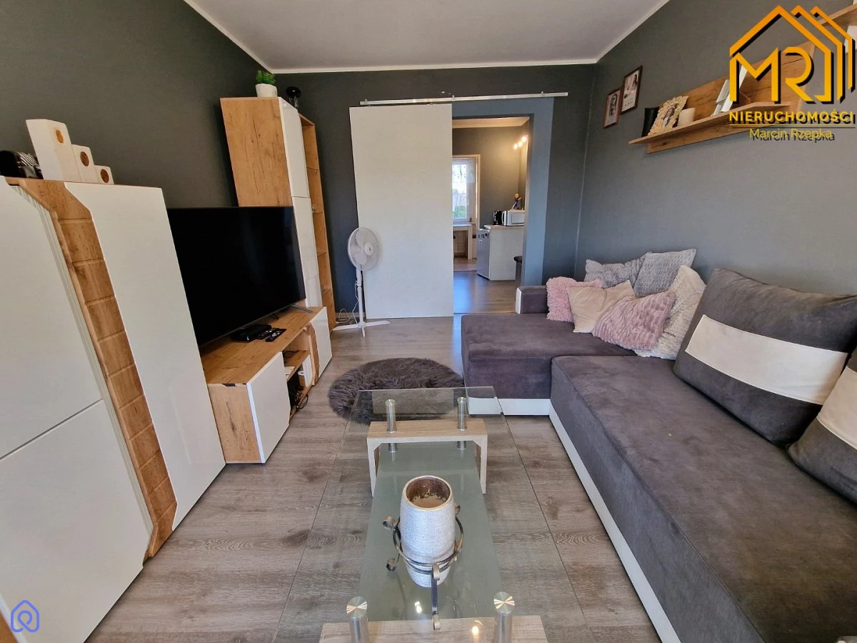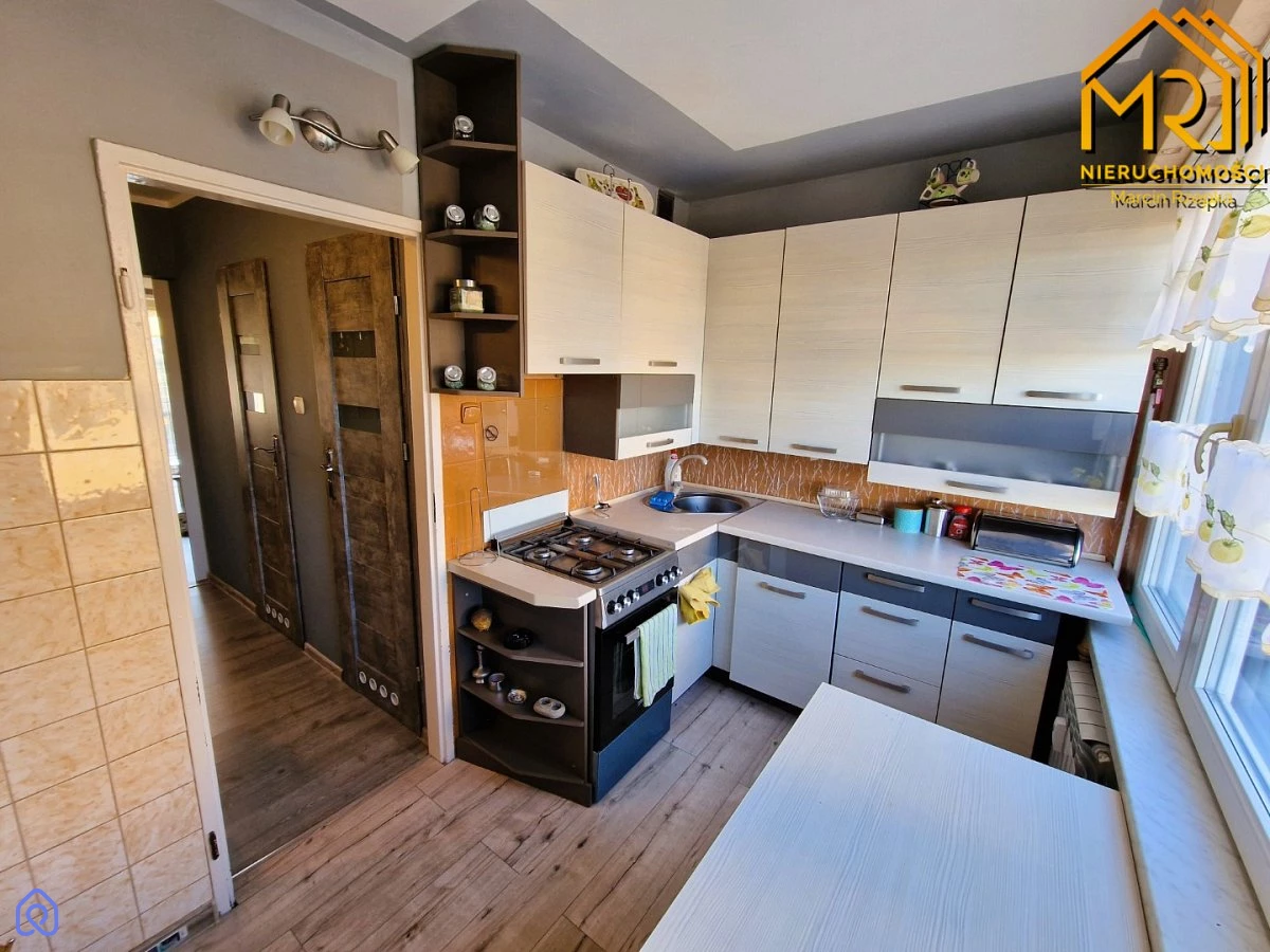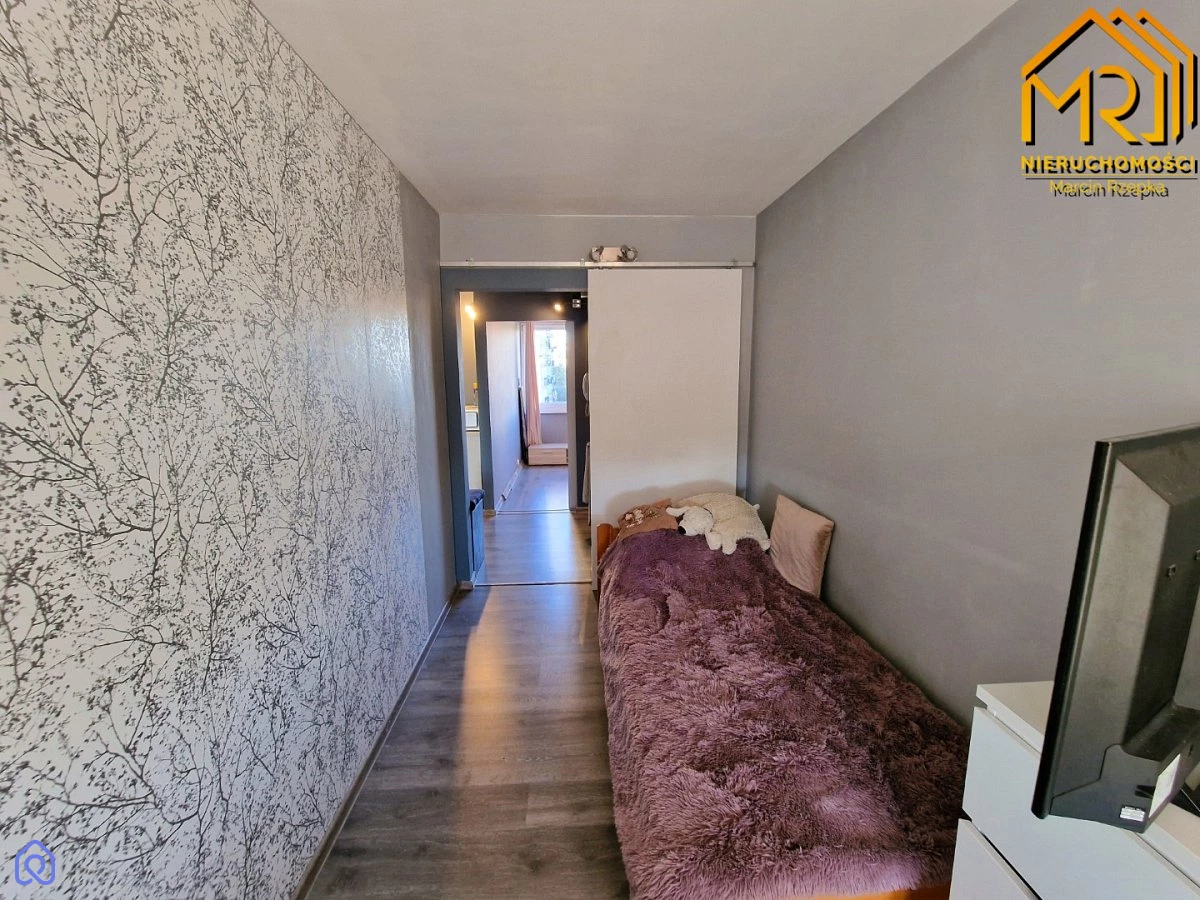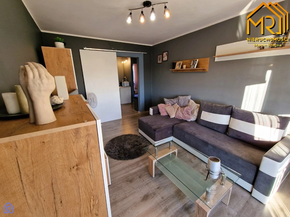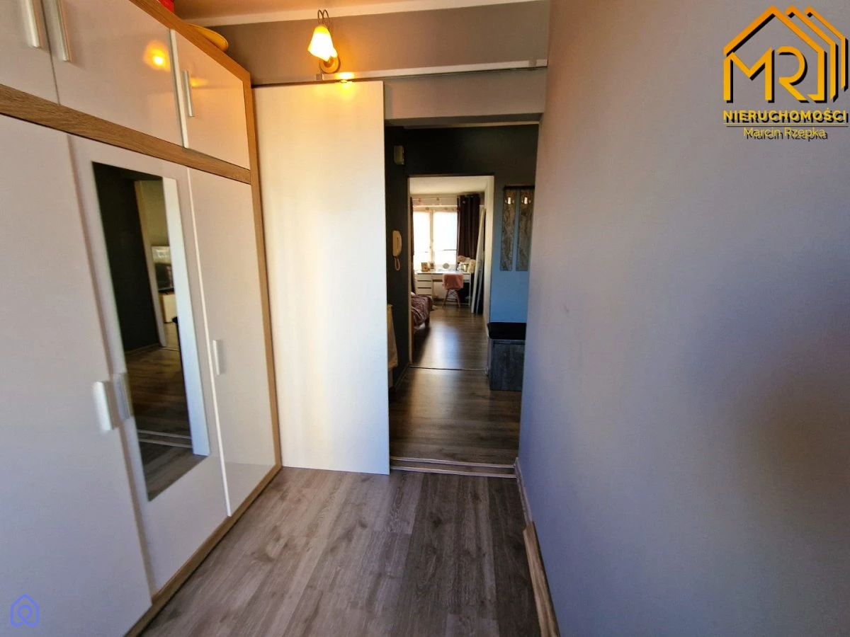 Blok został poddany termomodernizacji. Mieszkanie posiada okna PCV o wystawie północ-południe, a zamontowane przesuwne drzwi wewnętrzne do pokoi dodają wnętrzu przestronności.