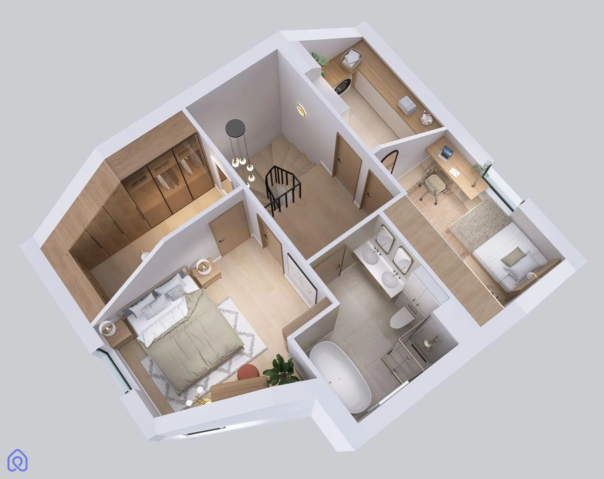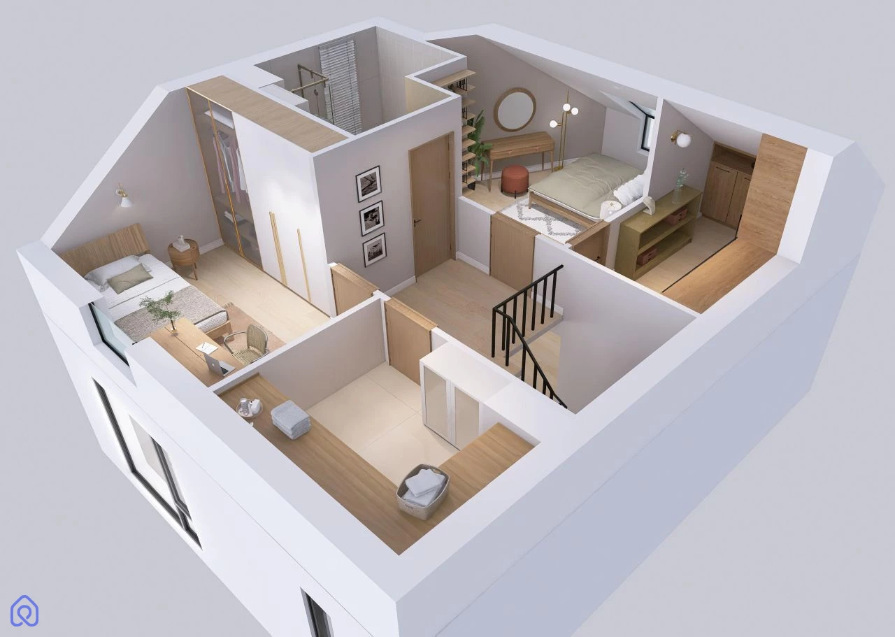 Świetna opcja dla dużej rodziny lub osób pracujących zdalnie – gabinet na poddaszu gwarantuje ciszę i koncentrację.