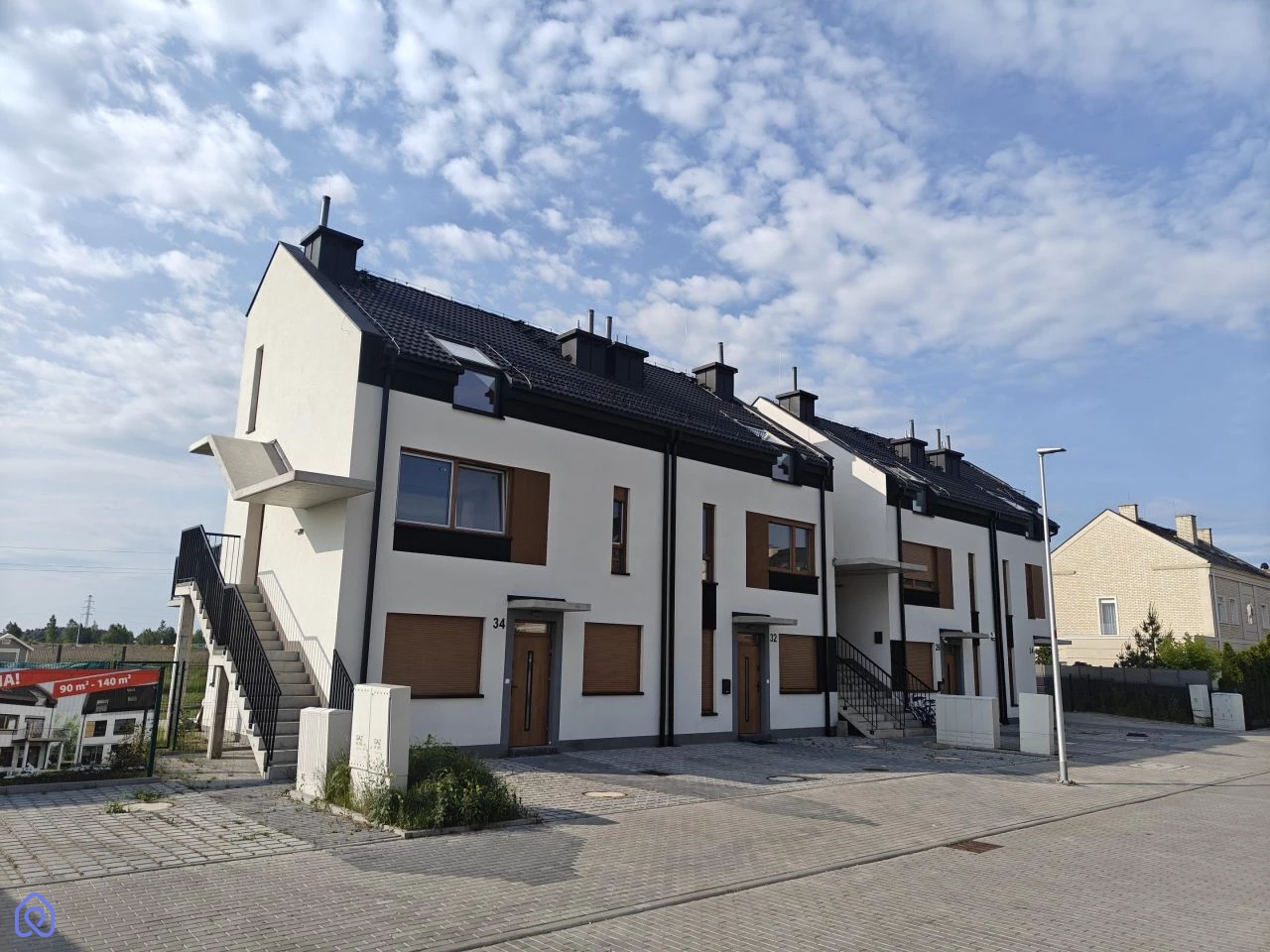 - Spokojna, zielona okolica z niską zabudową.