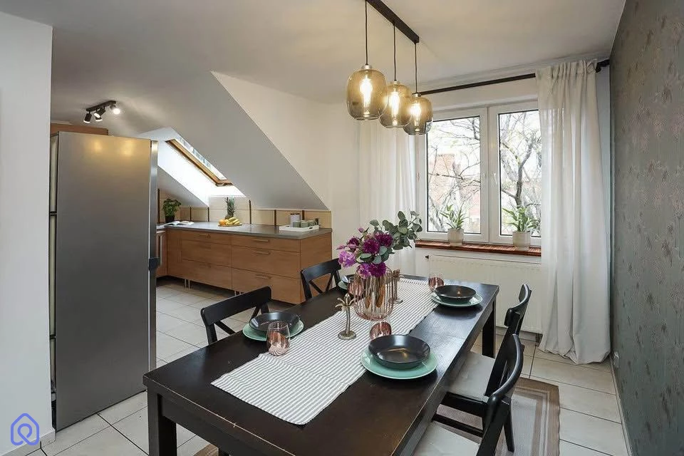 Mieszkanie ma 103 m2 po podlodze i 86 m2 powierzchni użytkowej. Mieszkanie jest dwupoziomowe - 3 pietro ( ostatnie), cieple, ciche, nie slychać sąsiadów. Do mieszkania przynalezy komorka lokatorska.