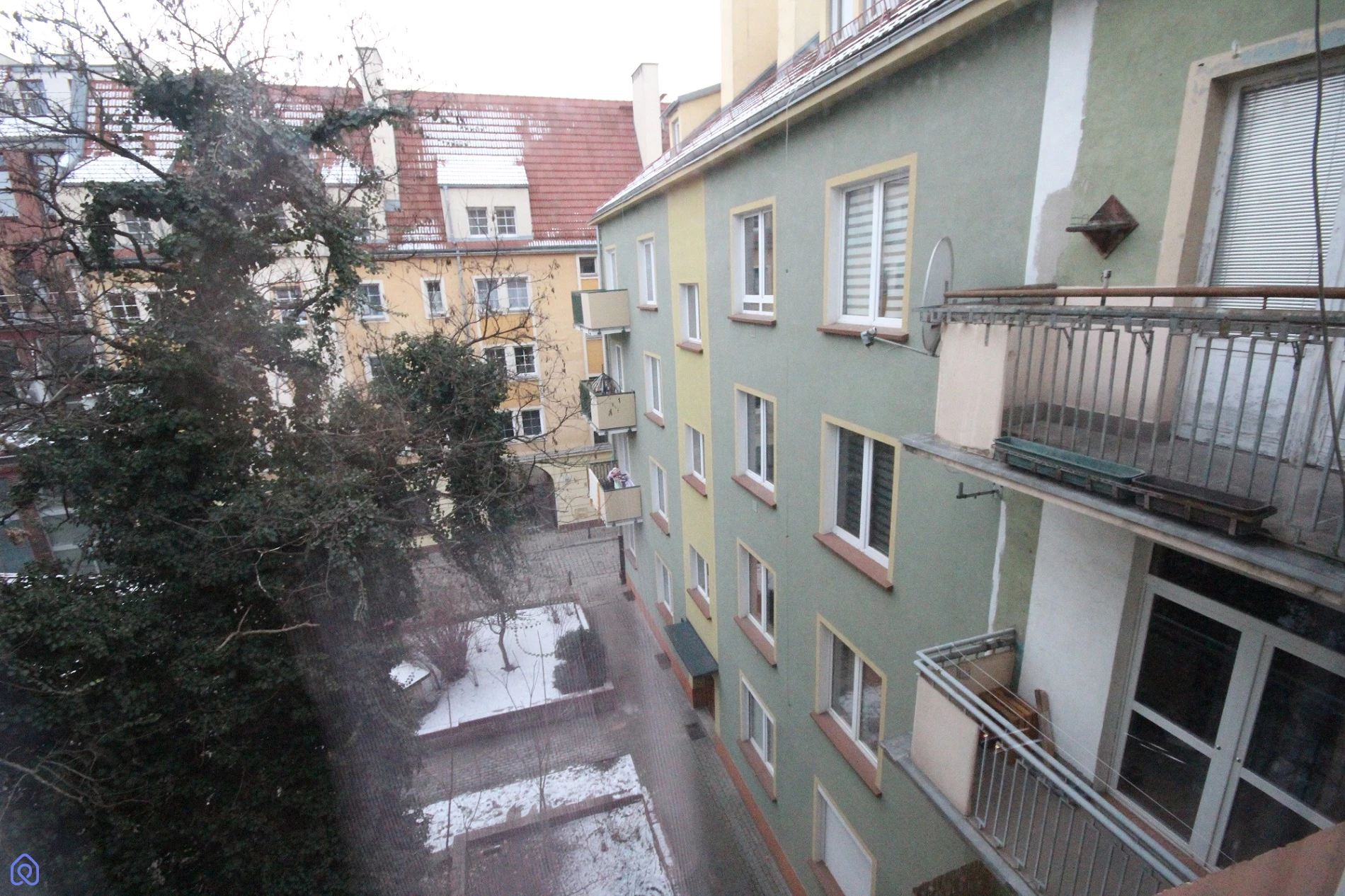 Ciche – okna na zielone podwórko, budynek odsunięty od ulicy Budynek z cegły.