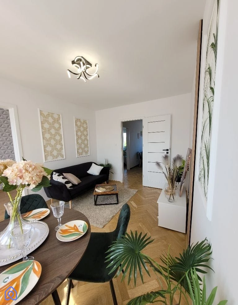48 m.kw. Budynek po termomodernizacji. Jasna, czysta, piękna klatka schodowa, widna- z oknami (na całej ścianie) na każdym półpiętrze. Nieruchomość świeżo po kapitalnym remoncie, podczas którego wymienione zostały wszystkie instalacje: elektryczna, wodna i kanalizacyjna. Piętro 4/4. Proszę się tym nie zrażać, schody nie stanowią tu problemu. Niezwykle przyjemna wysokość stopni. Mam mieszkanie na 3 piętrze i wchodząc tam męczę się dużo bardziej niż wchodząc tutaj na 4. Plusem wysoko położonego mieszkania jest wspaniały widok na korony drzew, ze wszystkich okien. Kolejny plus - zachody słońca oszałamiające i... brak komarów (nie dolatują ;)).