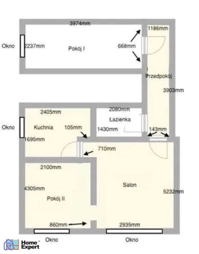 co umożliwia łatwe wydzielenie trzeciego, niezależnego pokojui uzyskanie pełnego rozkładu.