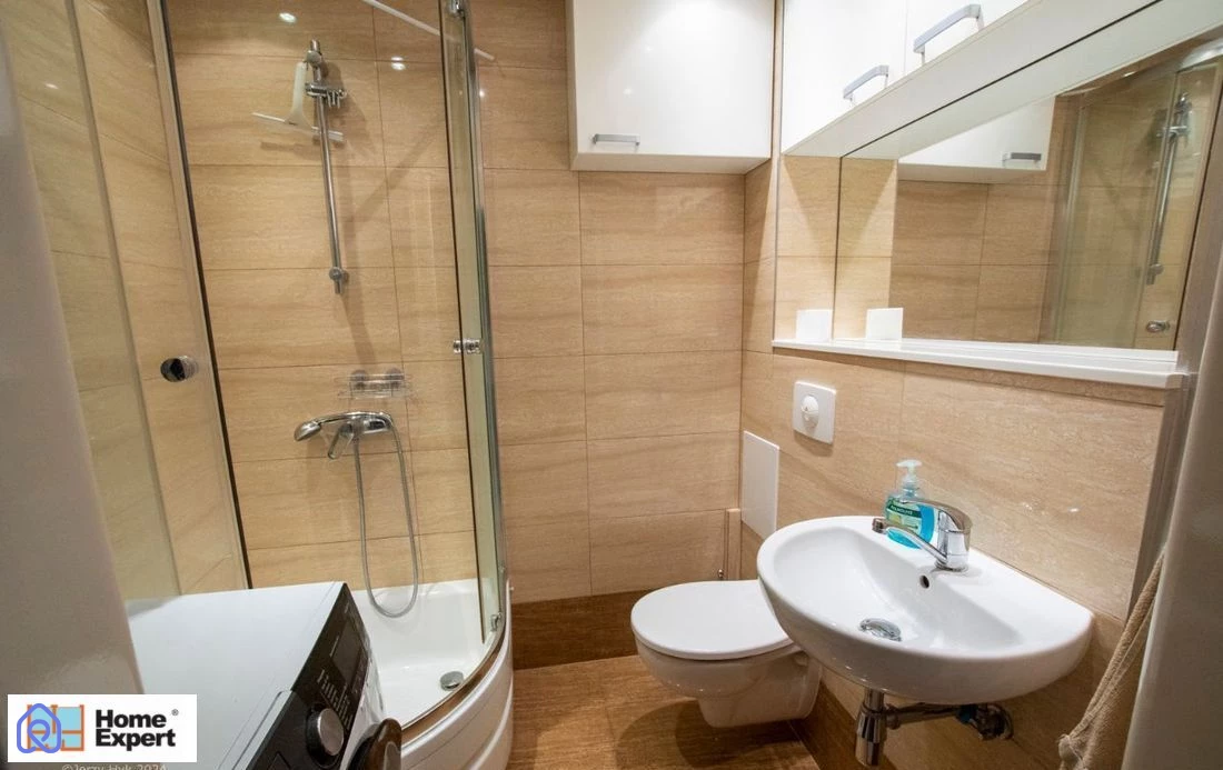 W przedpokoju dużo szafek, wieszak, lustro małe i wielkie lustro dla dam. Łazienka odremontowana parę lat temu, z kabiną prysznicową 90cm, miejscem na pełnowymiarową pralkę, suszarka do ręczników elektryczna, sufit regips podwieszany, oświetlenie LED (3 strefy), wentylacja automatyczna z higrostatem.