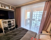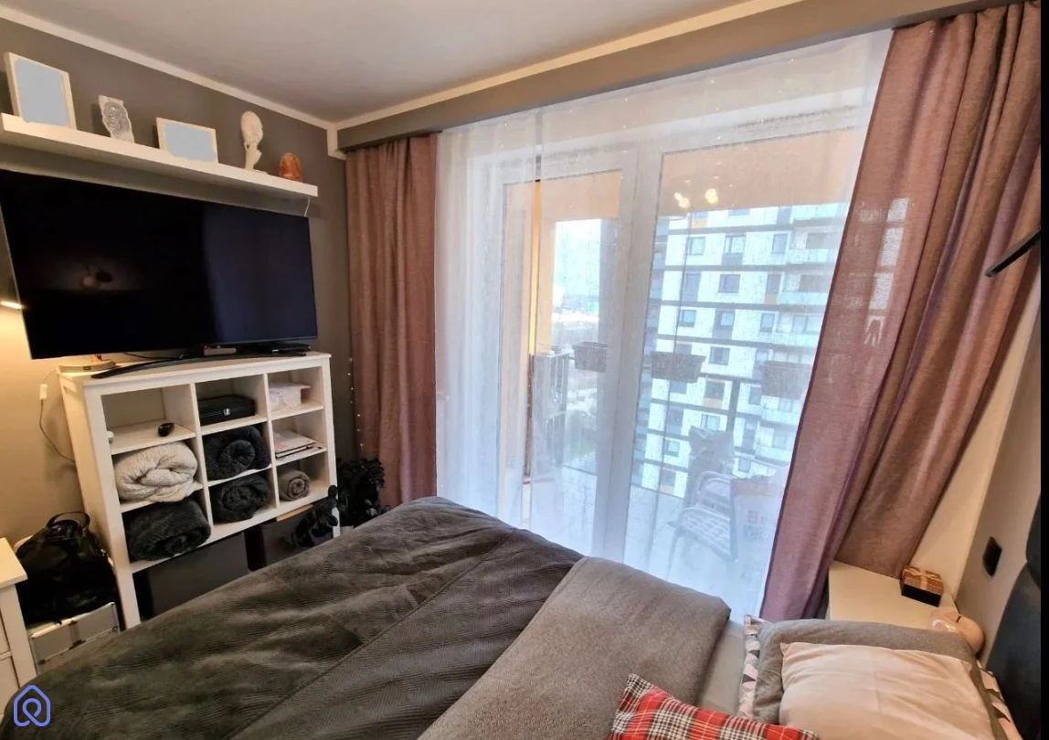 W jednej z 2 sypialni (ok. 10 m2) mieści się łóżko o szer. 140 cm oraz szafa na całą szerokość ściany i szafka pod telewizor.