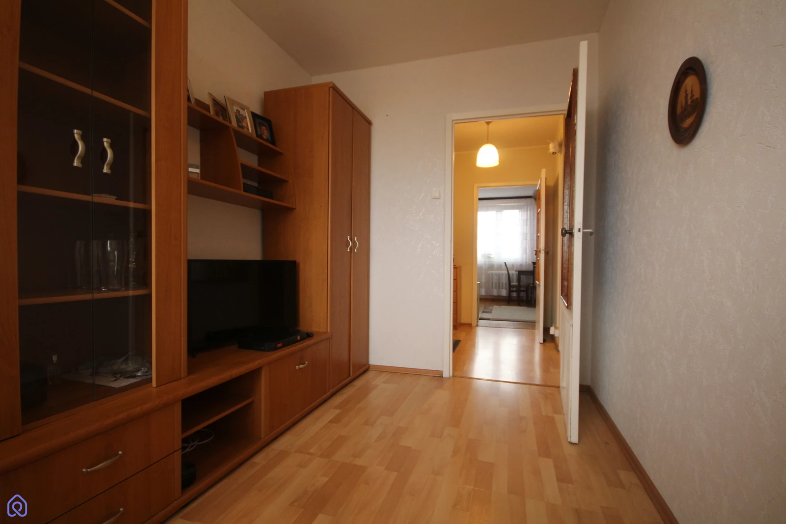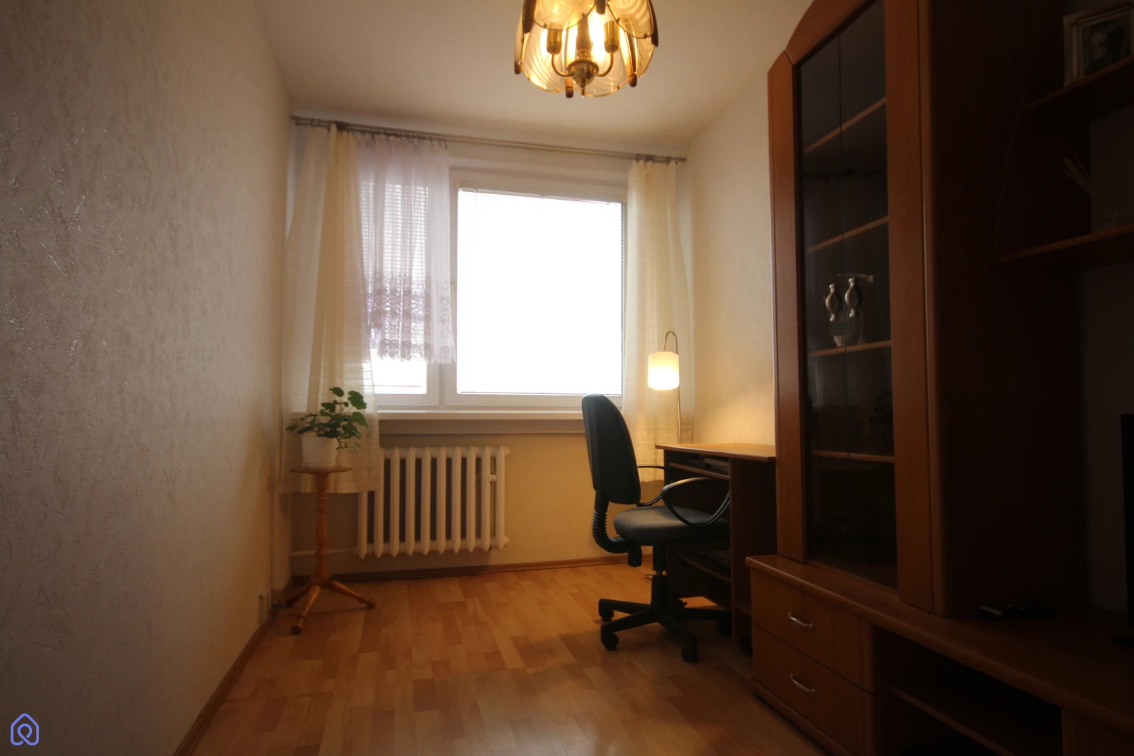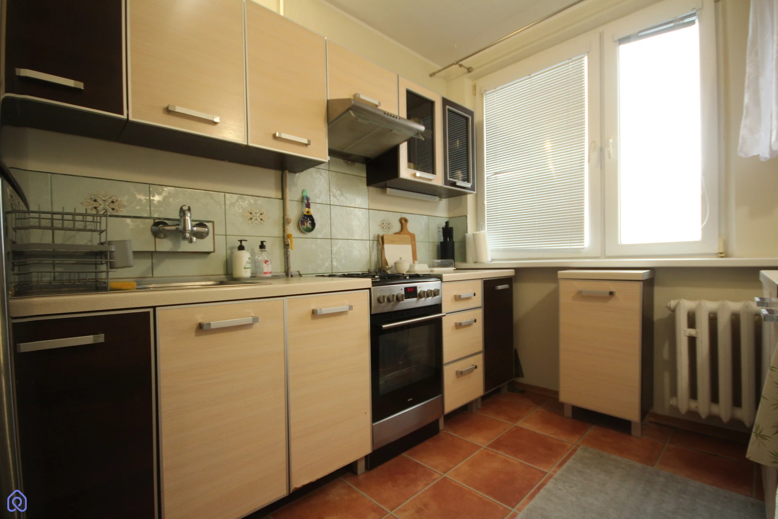 Kuchnia, urządzona w funkcjonalny sposób, jest oddzielna, co zapewnia komfort podczas gotowania. Mieszkanie dysponuje także dodatkowymi pomieszczeniami, takimi jak schowek i piwnica, co stanowi istotny atut w kontekście przechowywania rzeczy.