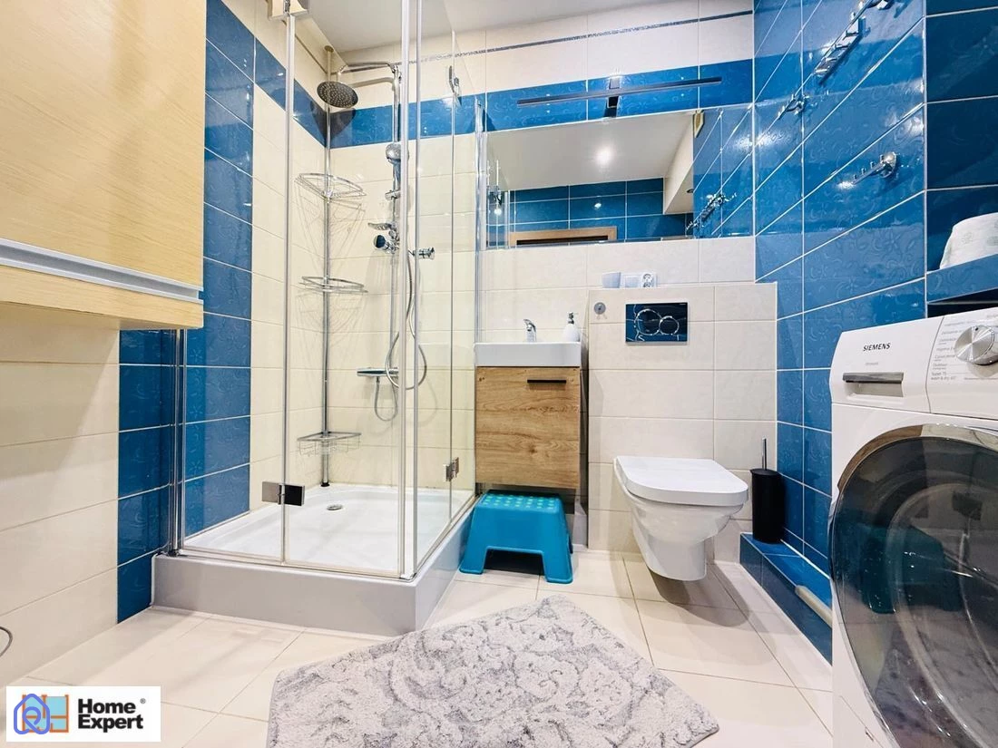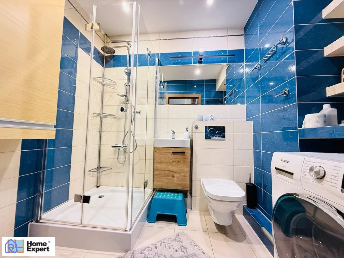 Na wyposażeniu łazienki - pralko-suszarka firmy Siemens.