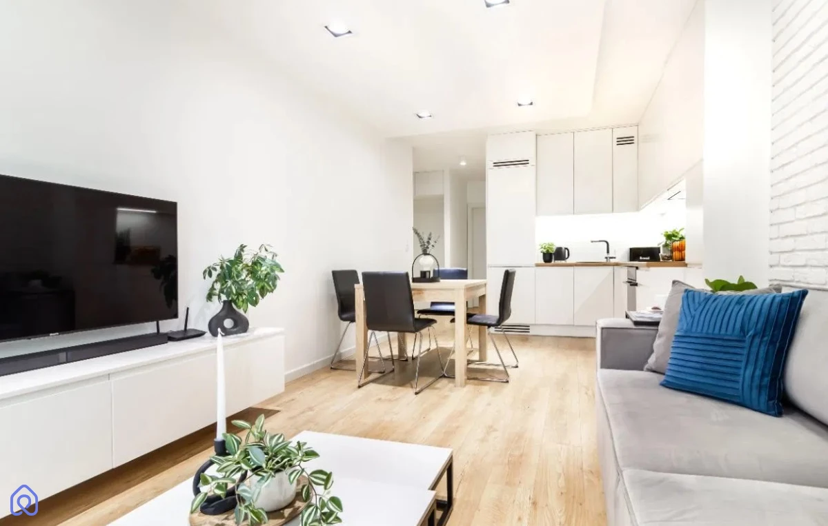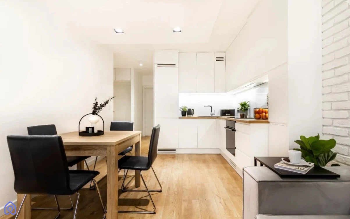 Mieszkanie zostało wykończone na wysoki standard. Wszystkie meble w mieszkaniu zostały wykonane na wymiar. Wszelkie zastosowane materiały są z wysokiej półki - farby FLUGGER, podłoga MYFLOOR CHALET, armatura KLUDI, VILLEROY BOCH, odpływ KESSEL, drzwi przylgowe lakierowane POL-SKONE.