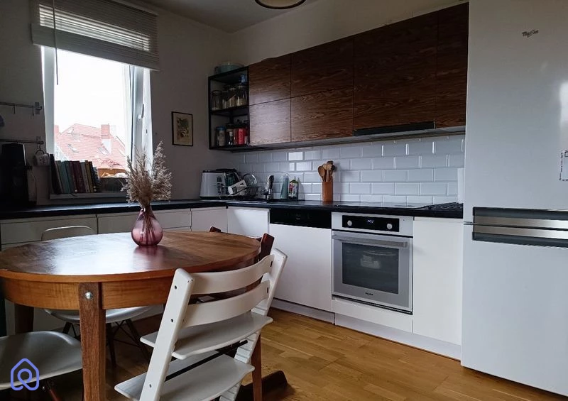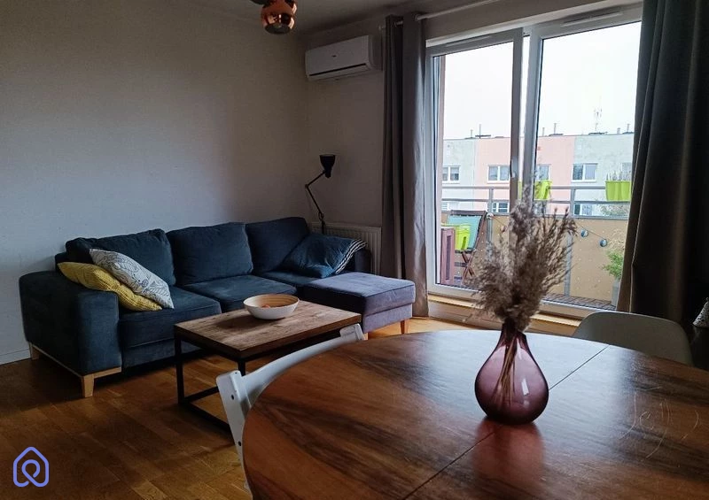 Mieszkanie usytuowane jest na trzecim, ostatnim piętrze bloku, co zapewnia cichą i spokojną atmosferę. Dzięki oknom skierowanym na południe i zachód, wnętrze jest jasne i przestronne.