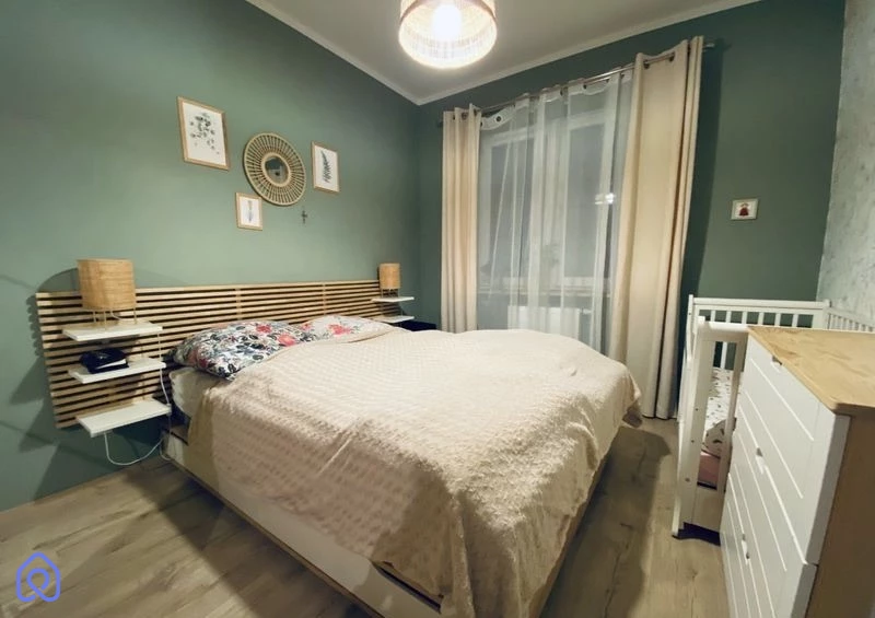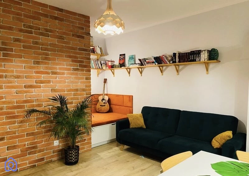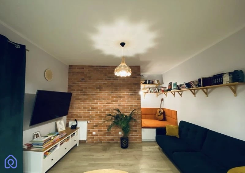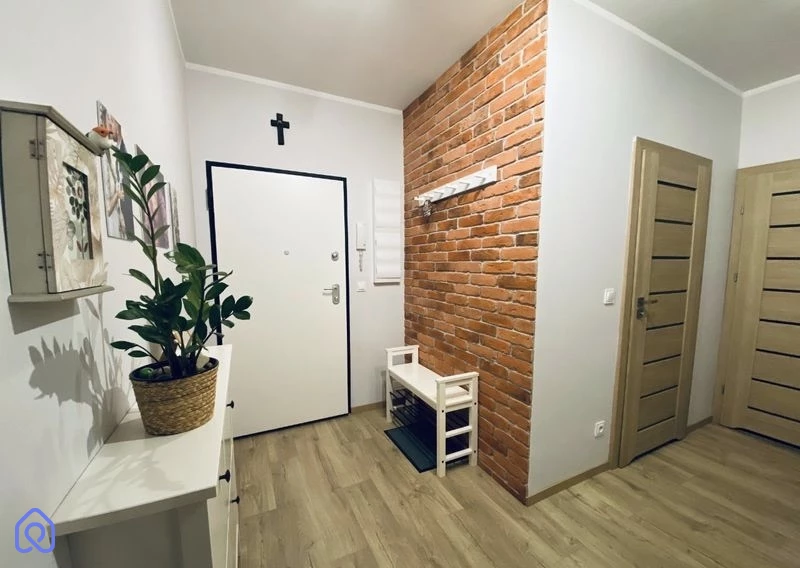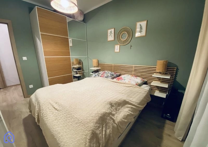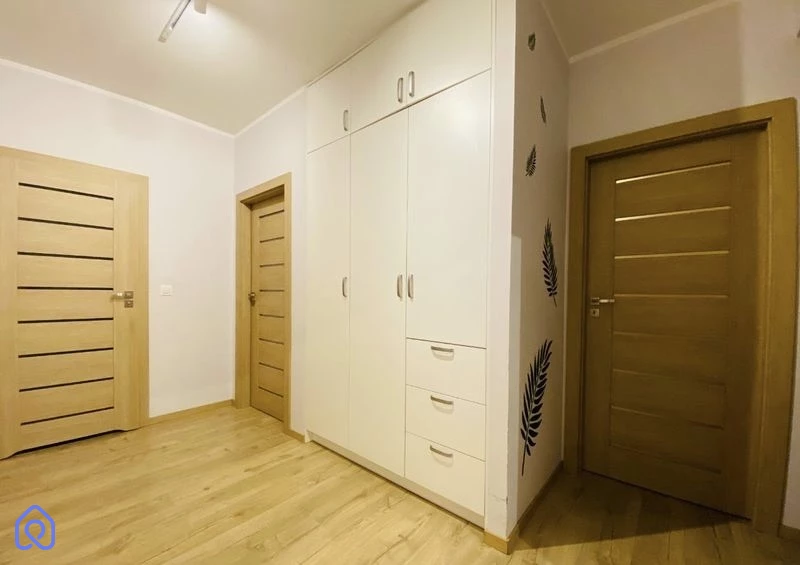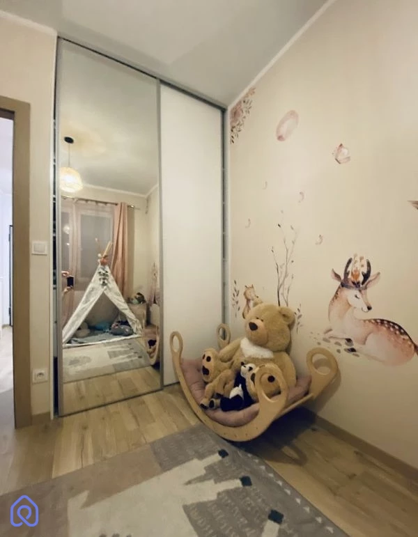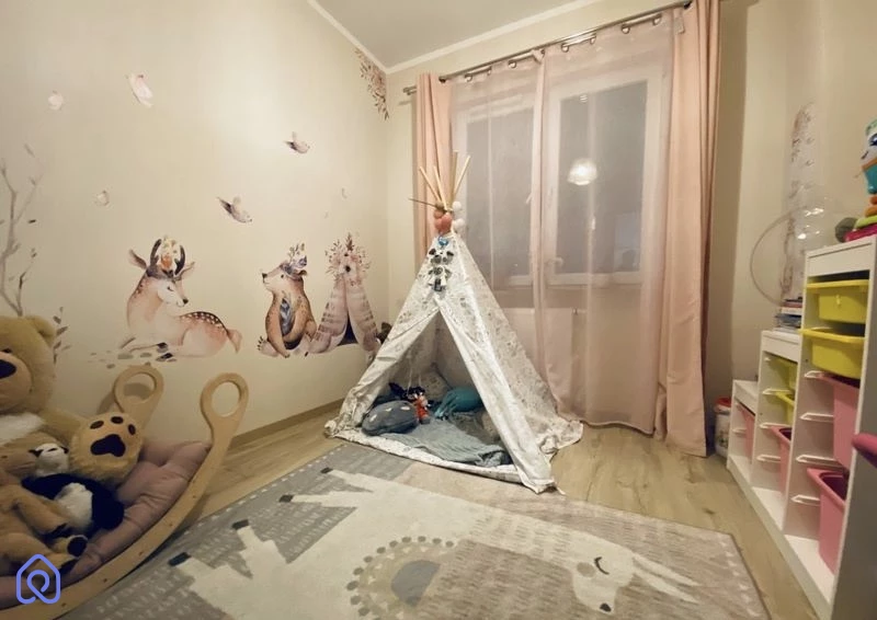 Sypialni z dużym wygodnym łóżkiem,Pokoju dziecięcego z dużą szafą,Salonu z aneksem kuchennym (z zabudową na wymiar),Łazienki,Pomieszczenia gospodarczego z regałami i wieszakami,Przedpokoju z dużą szafą.Standard Wykończenia: Mieszkanie zostało wykończone w bardzo wysokim standardzie, przy użyciu najwyższej jakości materiałów (wodoodporne panele Quick-Step, meble na wymiar). Wszystkie sprzęty i wyposażenie są nowe, bez żadnych śladów użytkowania, z gwarancją producenta. Wykończenie mieszkania jest stylowe i zgodne z najnowszymi trendami. Drzwi wejściowe są antywłamaniowe.