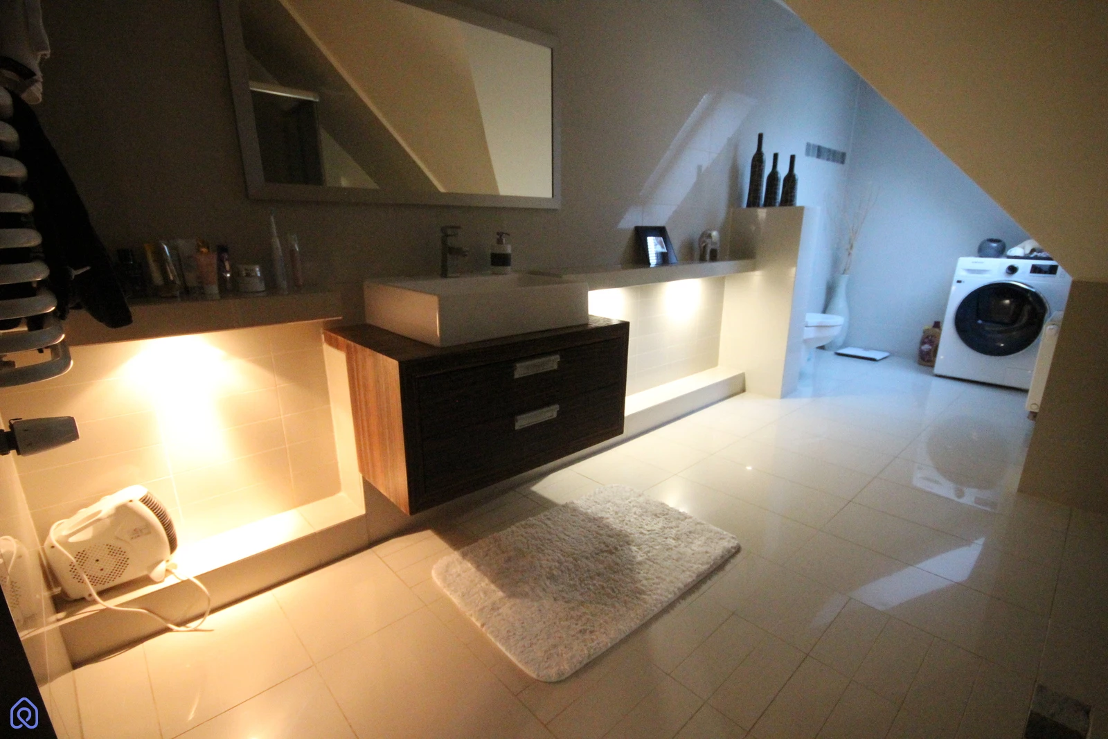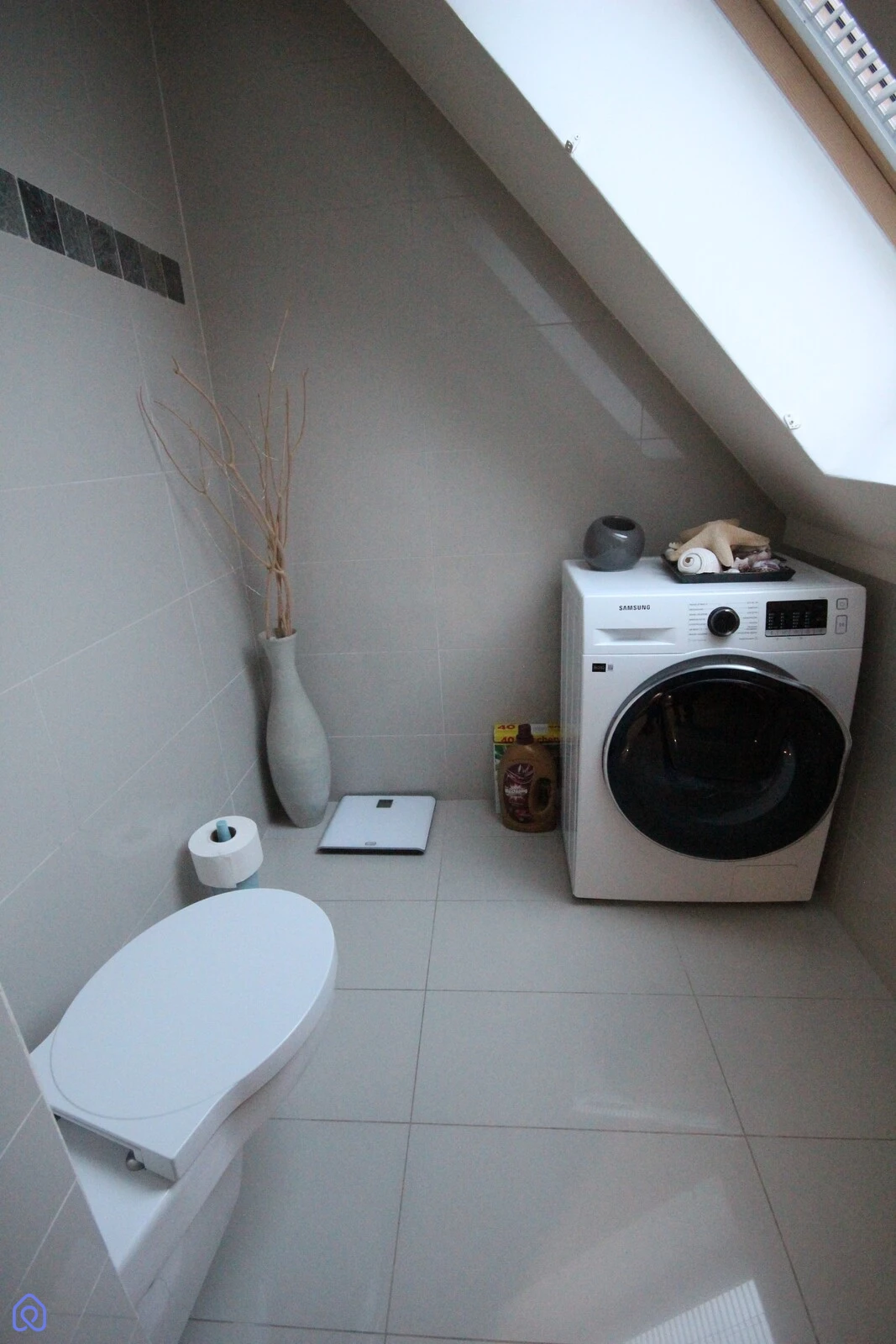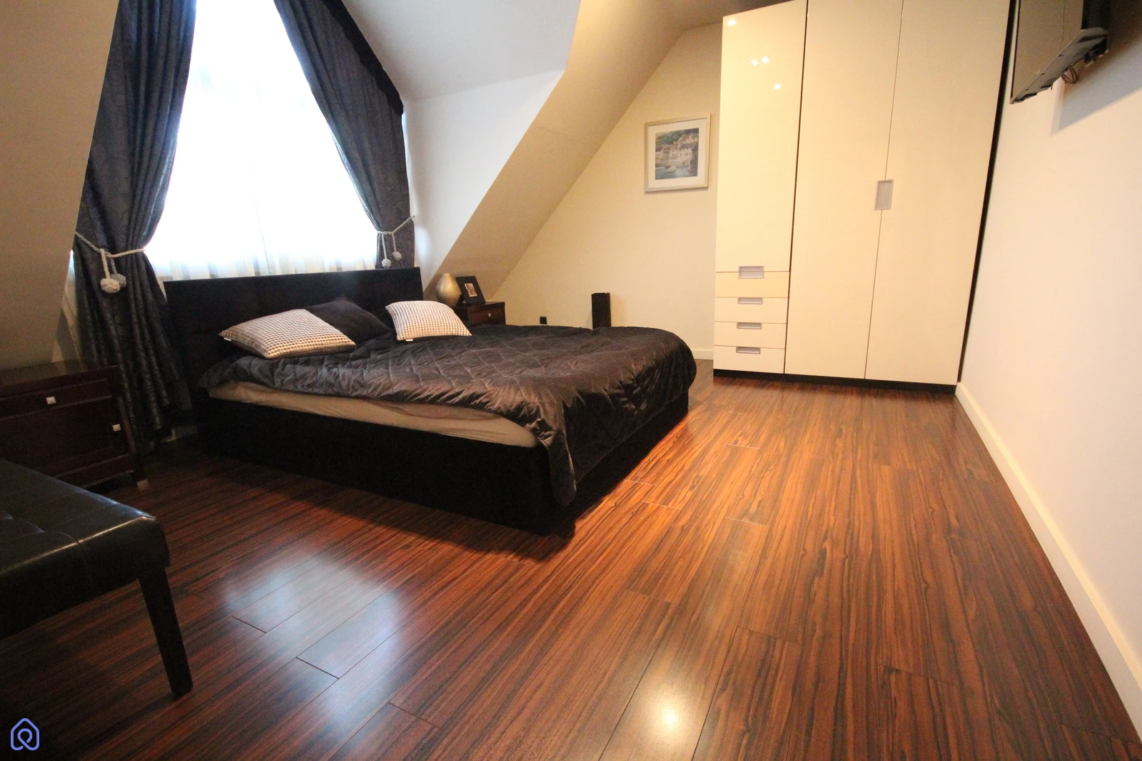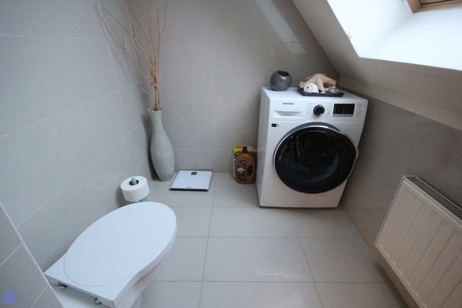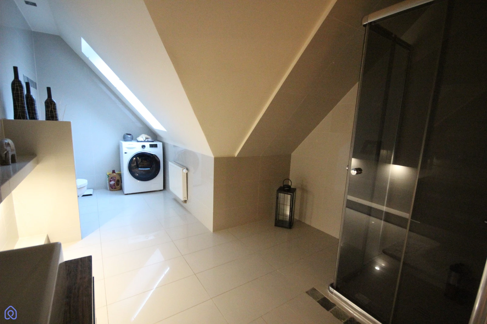 Na drugim poziomie znajduje się pokój, który służy obecnie jako miejsce do pracy oraz wydzielone miejsce na dodatkową garderobę, walizki, itp.