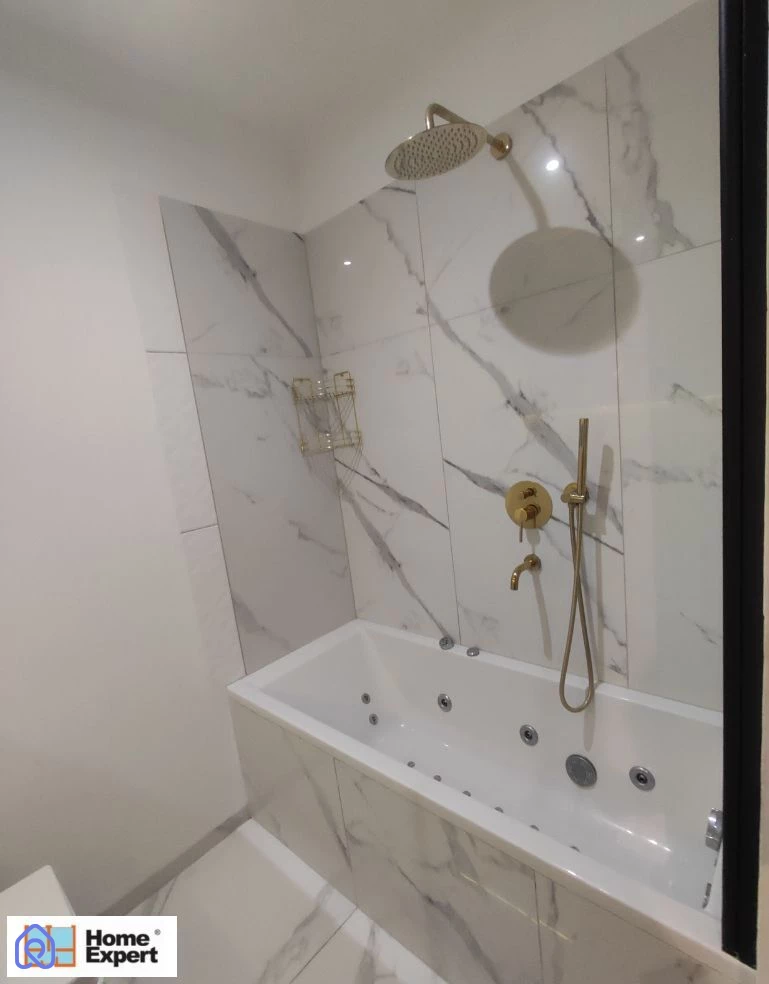 - Łazienka z wanną z hydromasażem oraz prysznicem.