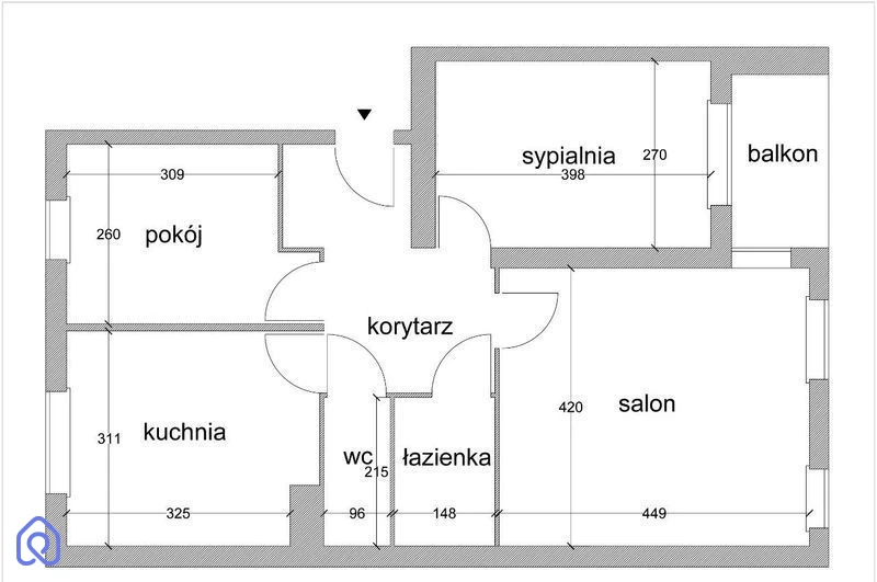 Trzypokojowe mieszkanie z osobną kuchnią.