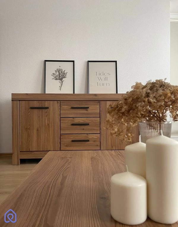 Pokoje urządzone w funkcjonalny sposób, z nowymi podłogami i malowaniem.