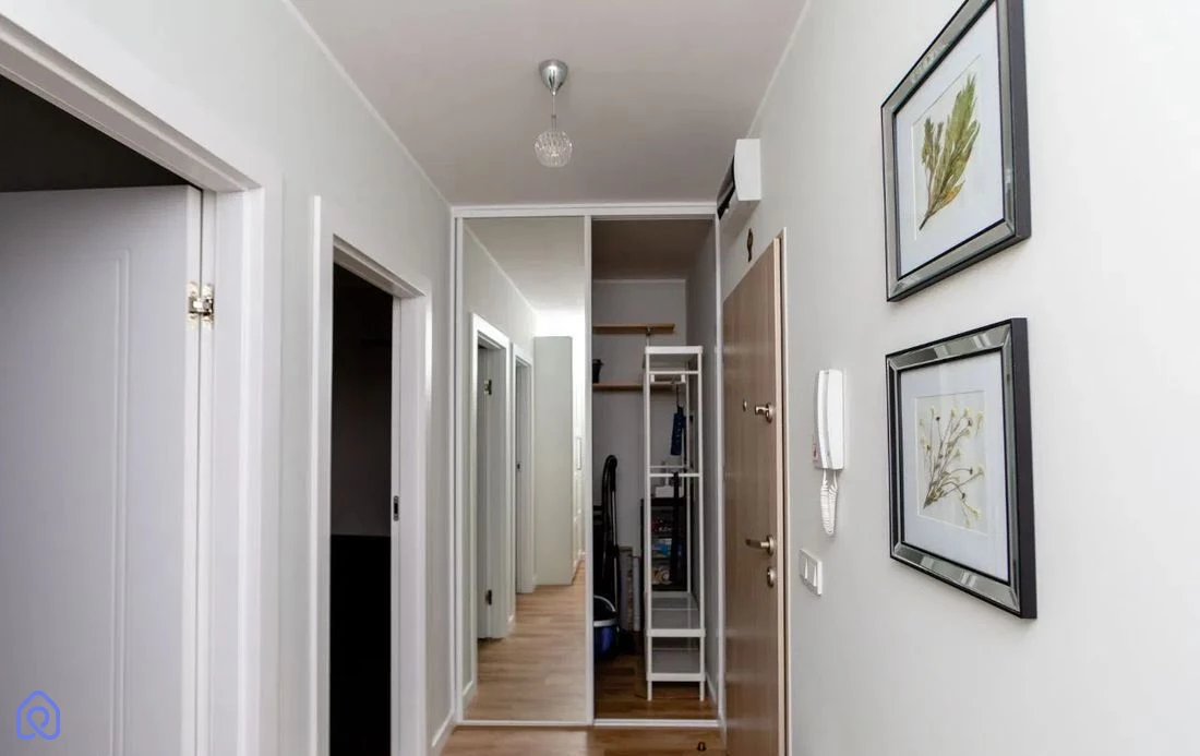 Przedpokoju (7,69 m²) – pojemna szafa w zabudowie oraz miejsce na buty i kurtki.