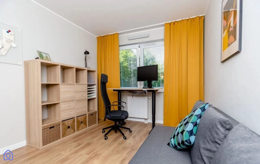 Biura (13,03 m²) – idealne na pracownię lub pokój gościnny, z rozkładaną sofą, biurkiem oraz szafą.
