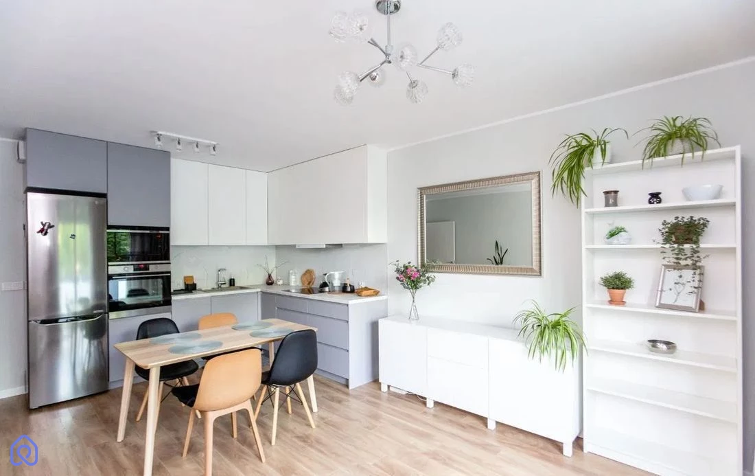 Wyposażenie mieszkania jest wysokiej jakości – wszystko pozostaje na wyposażeniu, co czyni ofertę bardzo atrakcyjną i gotową do wprowadzenia się.