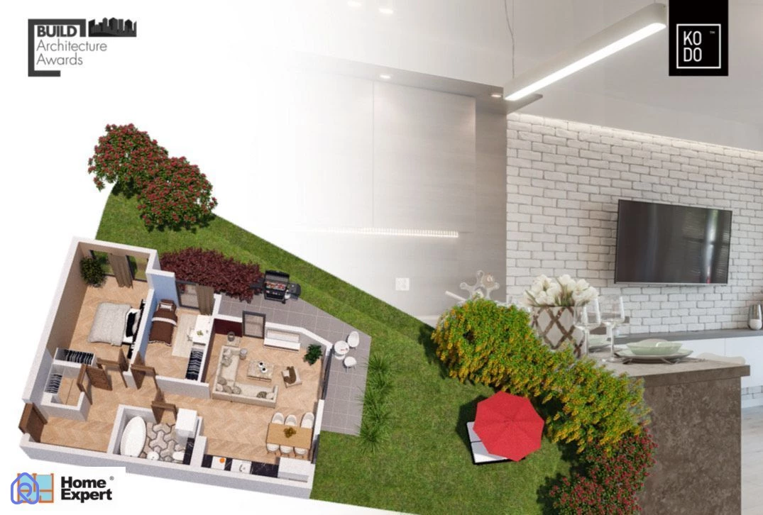 - 5 głośników wbudowanych w ścianach w salonie- kameralne osiedle mieszkaniowe w niskiej zabudowie
