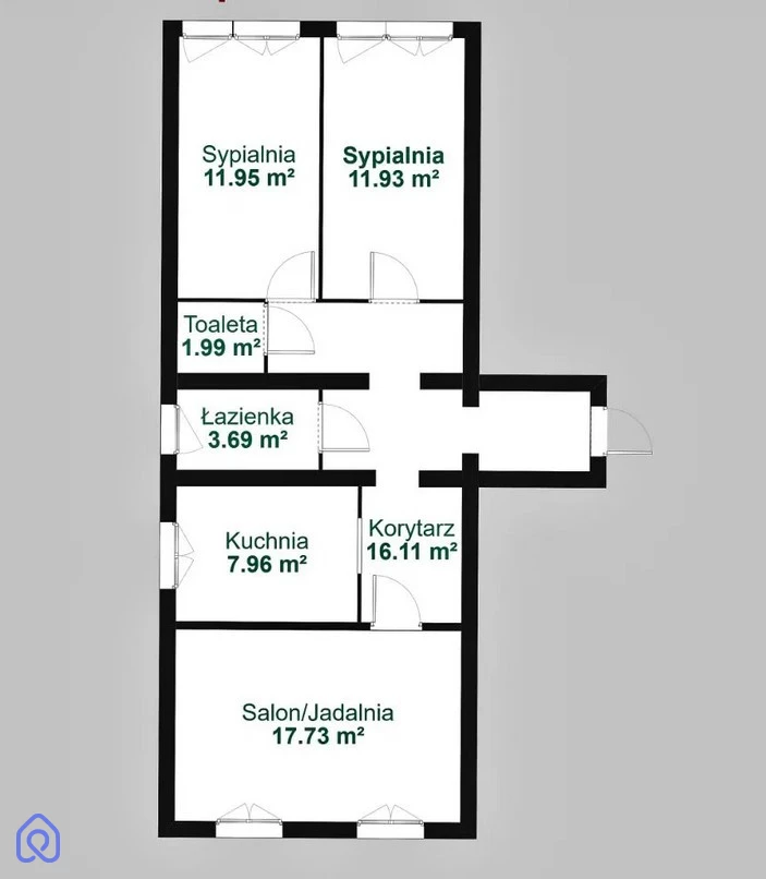 W skład mieszkania wchodzą również dwie sypialnie, obie ok. 12m2.