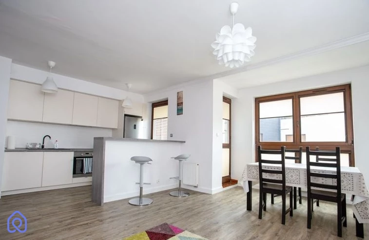 W części jadalnianej znajduje się stół z 4 krzesłami.