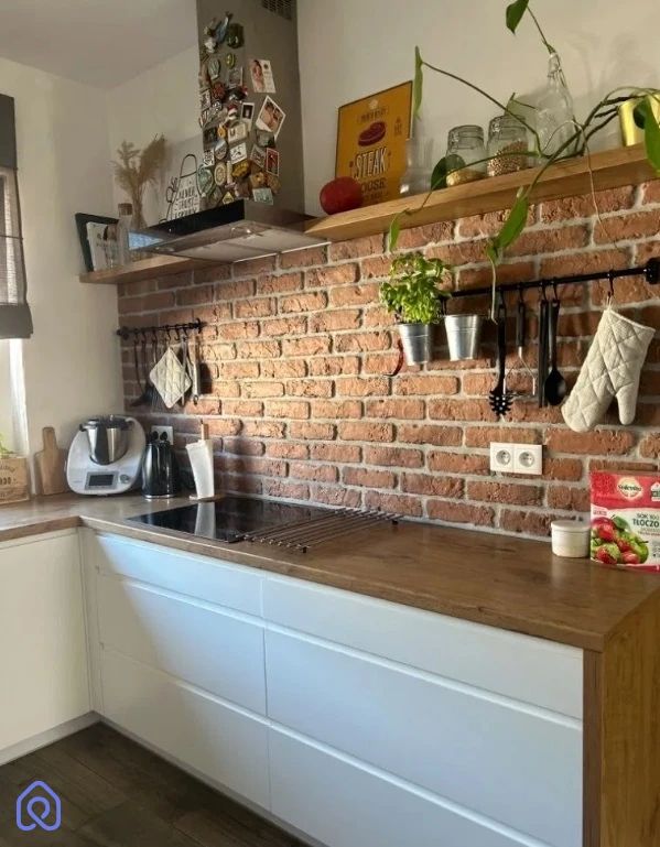 Ogrzewanie gazowe, podłogi z wodoodpornych paneli, dekoracyjna cegła, schody dębowo-jesionowe.