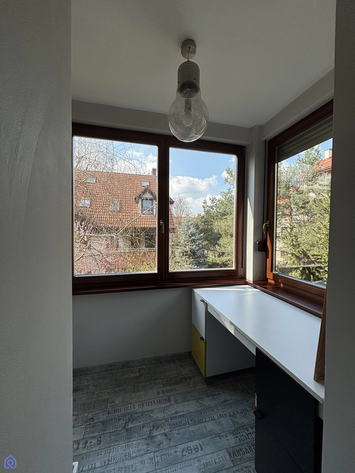 z widokiem na ogród i drzewa co daje prawie 90m2 powierzchni użytkowej.