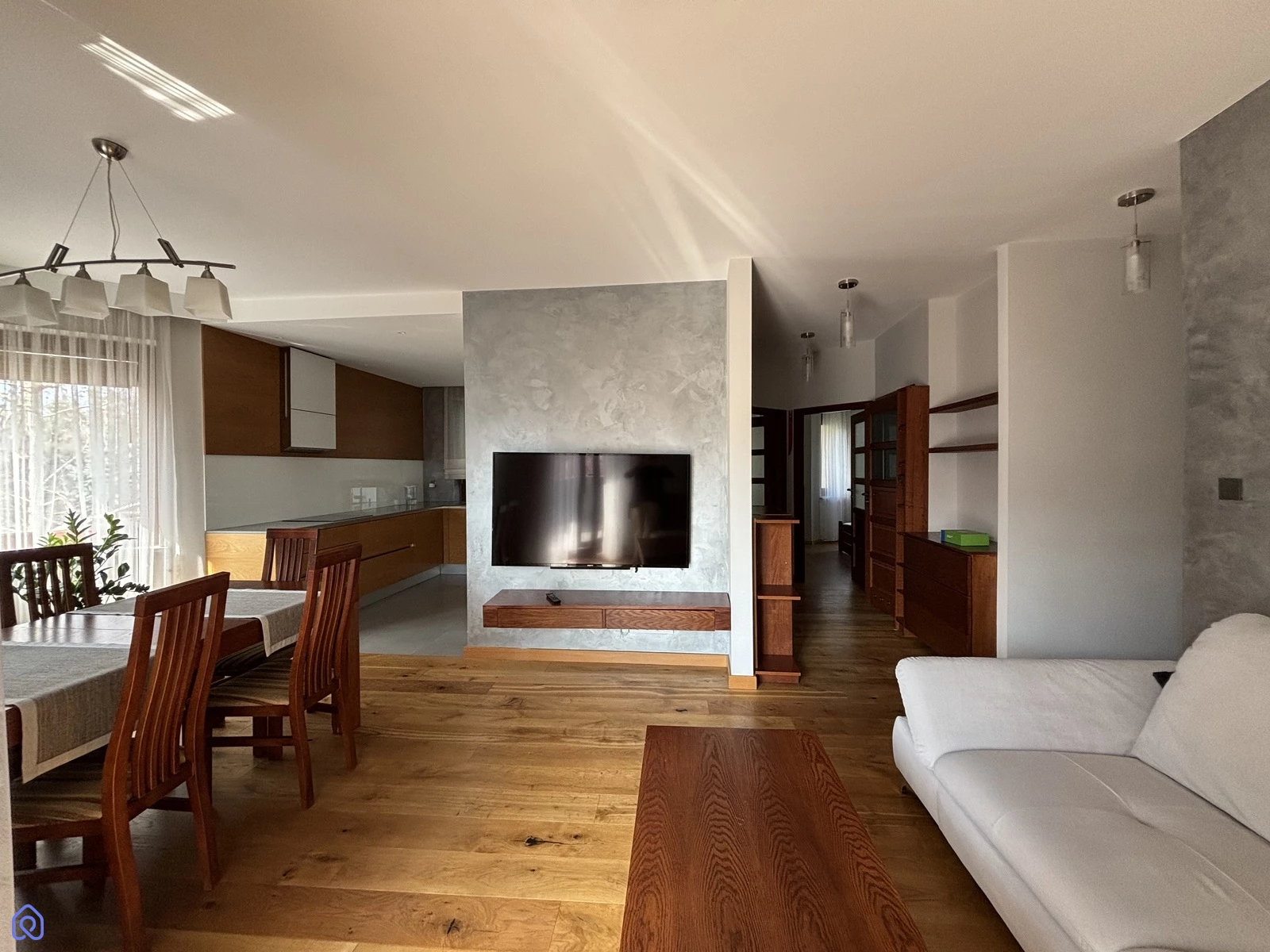 Mieszkanie jest urządzone z wysokiej jakości materiałów oraz posiada inteligentne wyposażenie.