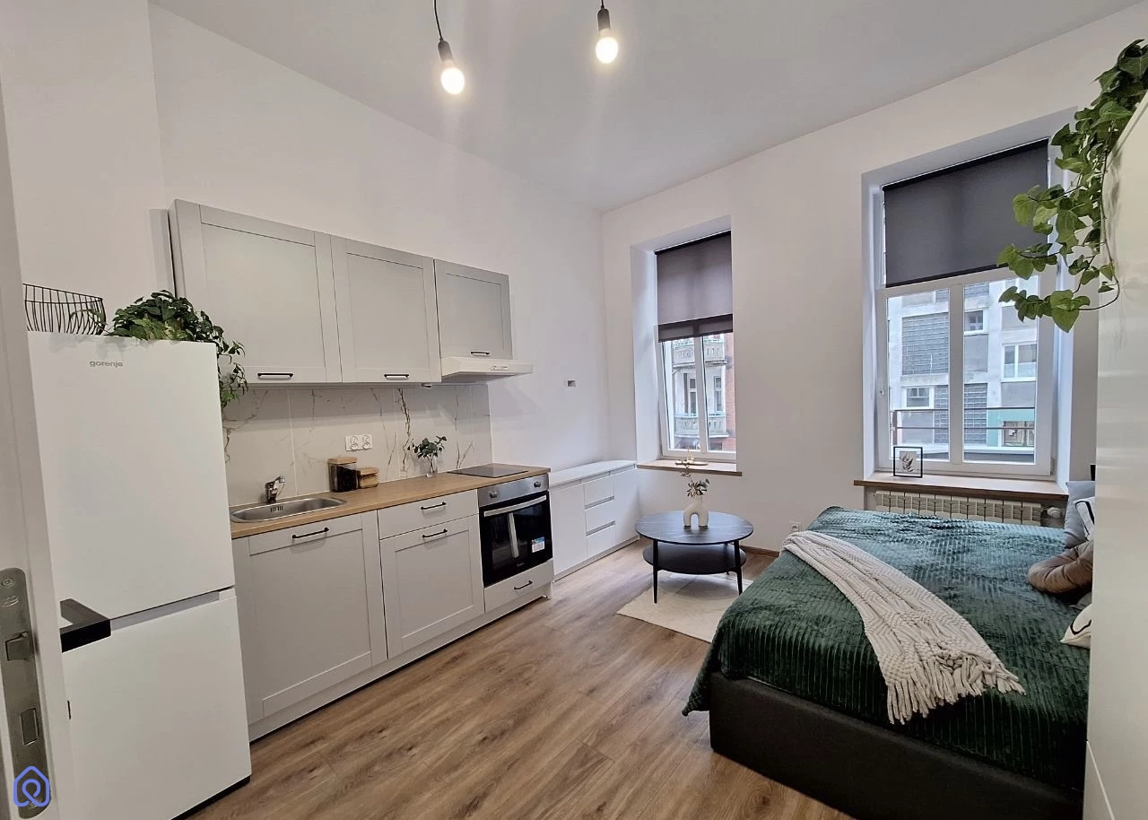 Każde mieszkanie całkowicie wyposażone. Sprzęt AGD : pralka, piekarnik, lodówka, zmywarka. Umeblowane z gustem.