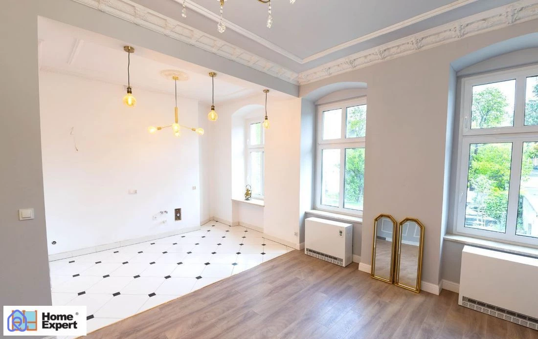 Mieszkanie 4-pokojowe, z balkonem, po kapitalnym remoncie, o powierzchni 110 m2 na 1 piętrze w czteropiętrowej kamienicy przy Galerii Pasaż Grunwaldzki. Kamienica w dobrym stanie, po remoncie elewacji od podwórka, wymianie okien na klatce schodowej oraz instalacji elektrycznej (w planie dalsza modernizacja) Mieszkanie słoneczne, z oknami wychodzącymi na wschód i zachód, w pełni rozkładowe, o wysokości pokojów 3,2 m. Balkon po stronie zachodniej. Ciche, gdyż nie ma bezpośredniego sąsiedztwa ruchliwej ulicy. Mieszkanie przeszło kapitalny remont, w ramach którego wykonano ciekawą, indywidualną aranżację wnętrz, wymieniono instalację elektryczną oraz wodną, stolarkę okienną, podłogi, położono gładzie na ścianach, założono ogrzewanie - nowoczesne, oszczędne piece akumulacyjne Stiebel, w łazience i kuchni ogrzewanie podłogowe. Rozprowadzony przewodowy internet. Odrestaurowano zabytkowe sztukaterie oraz drzwi. Rozkład: Salon z otwartą kuchnią i alkową - 41 m2 Pokój – 22m2 z balkonem Pokój - 21m2 (plus garderoba 4 m2) Łazienka – 2,5 m2 Toaleta – 2 m2 (z oknem) Toaleta 2 – 1,6 m2 (z oknem) Przedpokój – 18 m2 (z oknem) Przynależy duża piwnica Odrębna własność z księgą wieczystą! Miejsca parkingowe na wewnętrznym podwórku. Świetna lokalizacja w CENTRUM MIASTA. Cicha ulica tuż przy placu Grunwaldzkim, 300m od centrum handlowego w Pasażu Grunwaldzkim. W pobliżu znajdują się: Politechnika, Uniwersytet Przyrodniczy, Medyczny, Wydział Architektury, Uniwersytet Wrocławski, Ogród Botaniczny, Ostrów Tumski i Rynek. Apartament doskonale skomunikowany: w pobliżu przystanki, komunikacja miejska i połączenia w każdym kierunku miasta, sklepy i infrastruktura miejska. Jednocześnie 10 min spacerkiem od najładniejszego terenu zielonego we Wrocławiu - Parku Szczytnickiego z Halą Stulecia, Pergolą, Wrocławską Fontanną Mutlimedialną, Obserwatorium Astronomicznym, Stadionem Olimpijskim z kompleksem basenów.