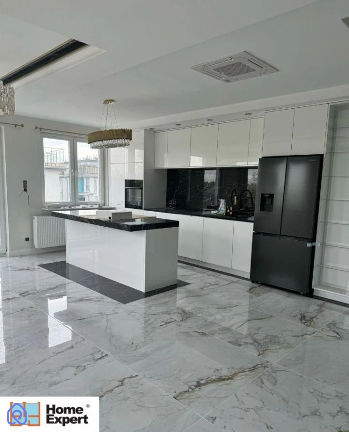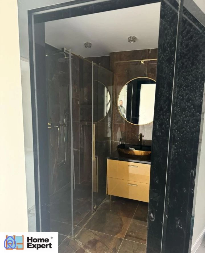 Mieszkanie jest wykończone , posiada urządzoną kuchnię i i łazienkę oraz profesjonalną klimatyzację , mieszkanie jest wykończone w bardzo wysokim standardzie , było robione dla siebie nie na handlel.