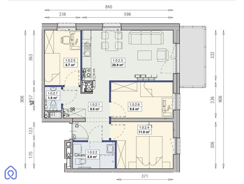 Sypialnie: 4