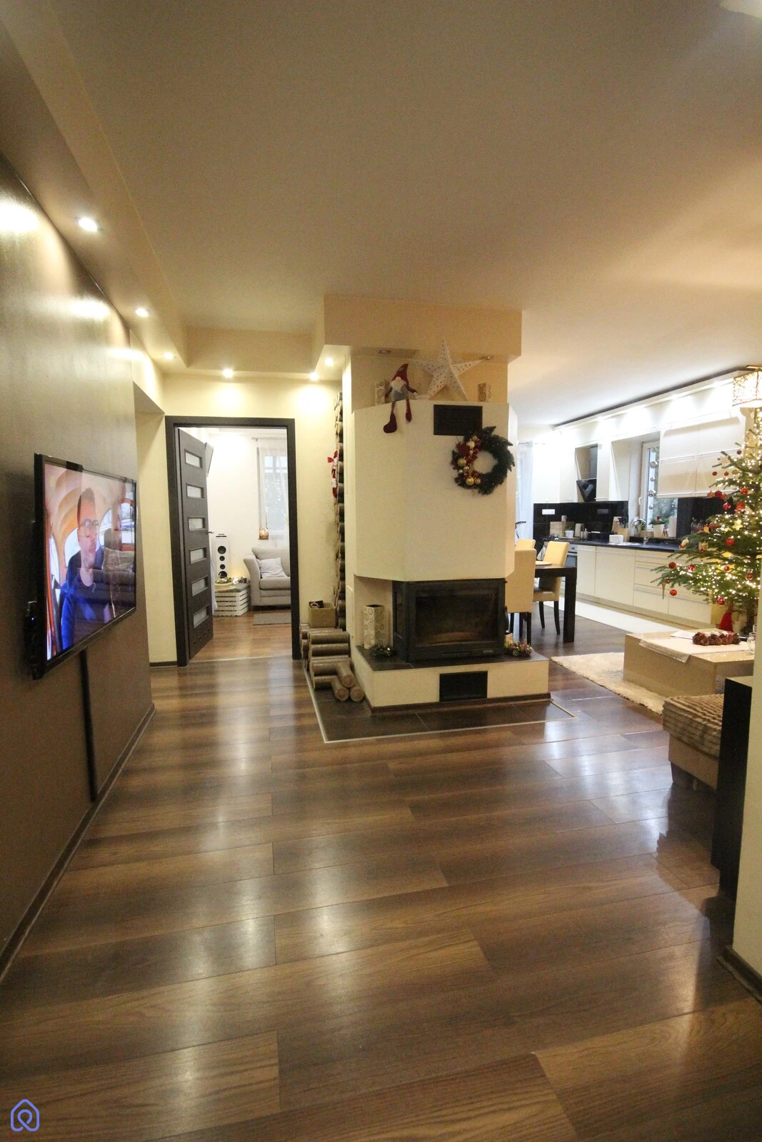 Ogrzewanie gazowe piecem dwufunkcyjnym oraz kominkowe.