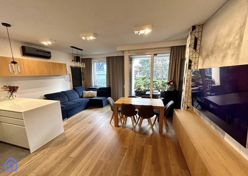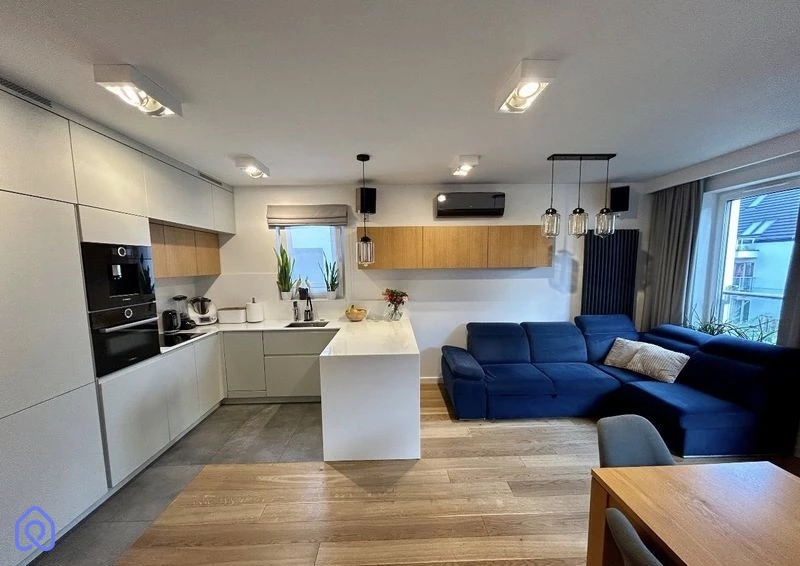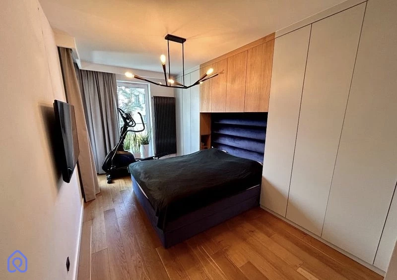 Mieszkanie zaprojektowane przez architekta, z dbałością o detale.Pełne wyposażenie, w tym meble kuchenne, łazienkowe, garderoba, a także meble ruchome i sprzęt AGD.Drewniana podłoga, oświetlenie, zasłony zaciemniające i klimatyzacja.Mieszkanie dostępne w pełni umeblowane i wyposażone.
