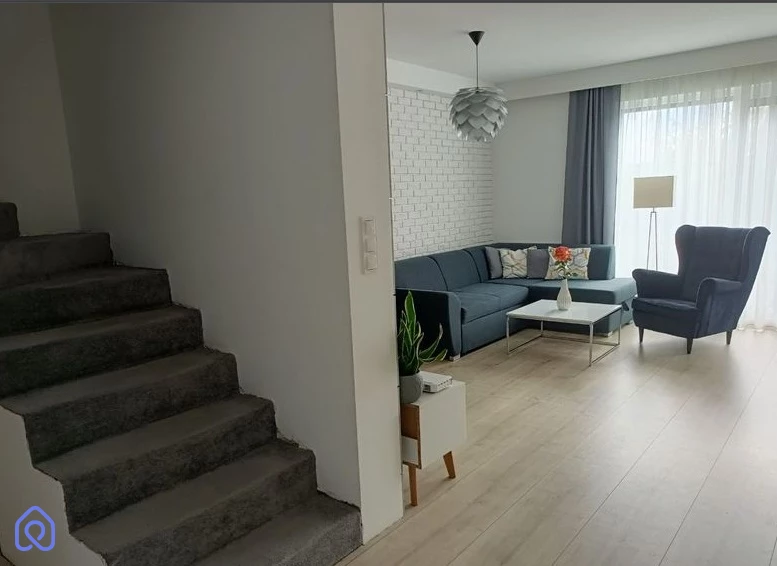 To środkowy segment o powierzchni 105 m2 z przepięknym ogrodem o powierzchni 50 m2, urządzony z dbałością o najwyższy standard wykończenia.