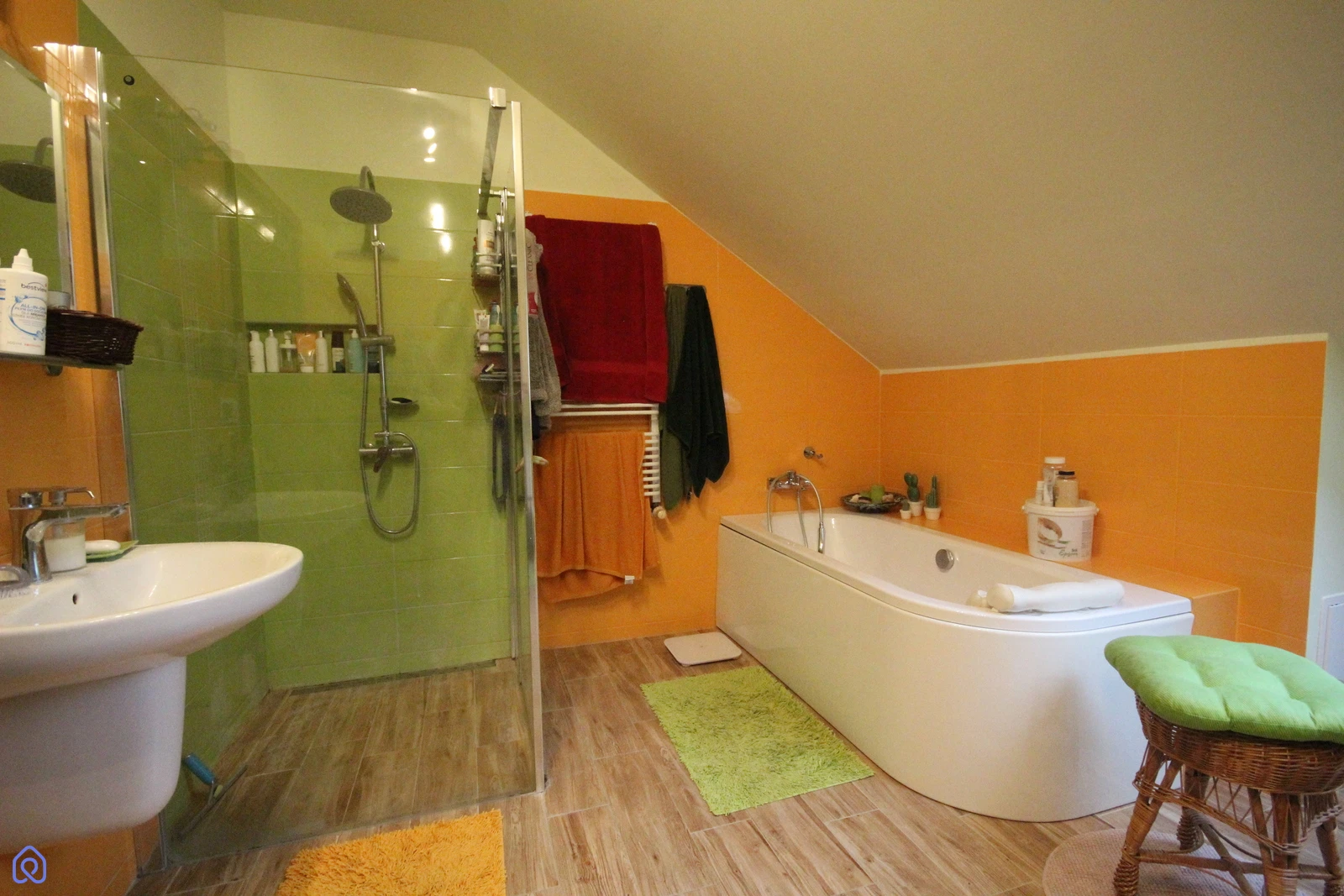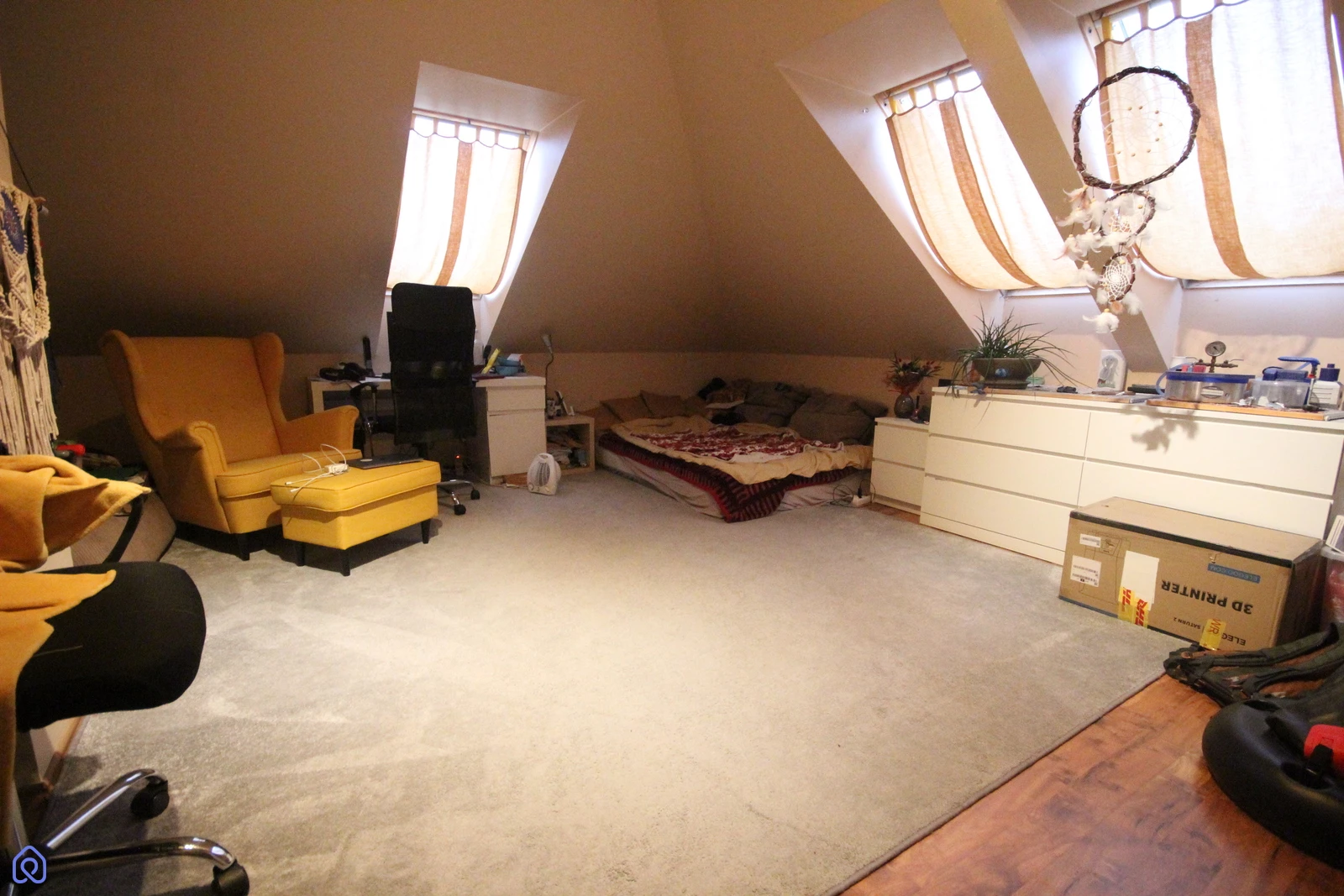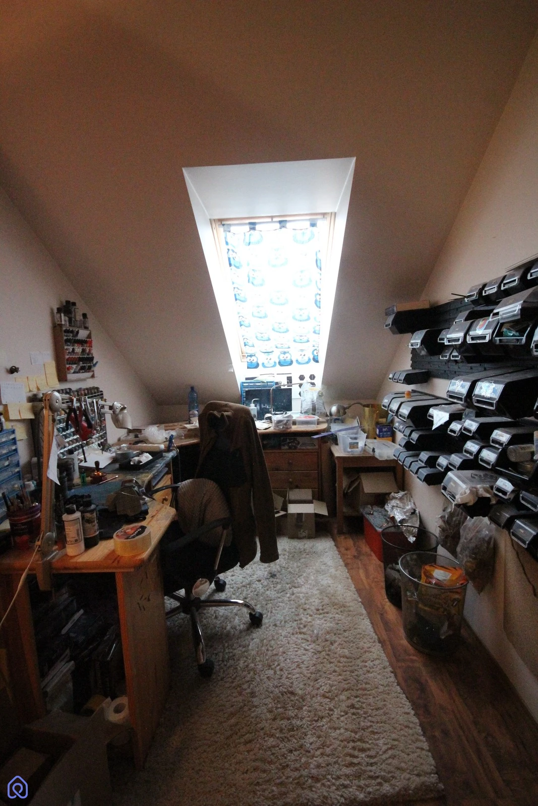 Na piętrze znajdziemy 3 duże sypialnie - główna z garderobą, dużą łazienkę a część korytarza przeznaczono na małą pracownie.
